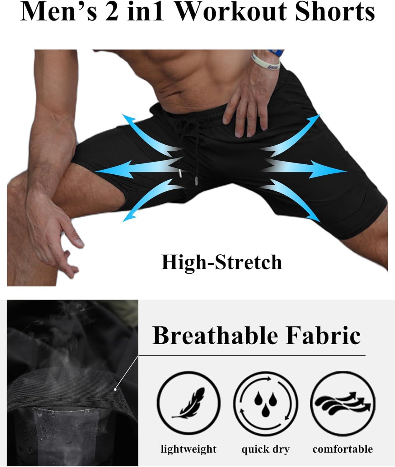 Get more for your money with our exclusive bundle deals on COOFANDY Men’s 2 Pack Running Shorts 2 in 1 Workout Shorts Quick Dry Gym Training Athletic Jogger with Phone Pockets(2-pack:peacock Blue+black) and accessories.