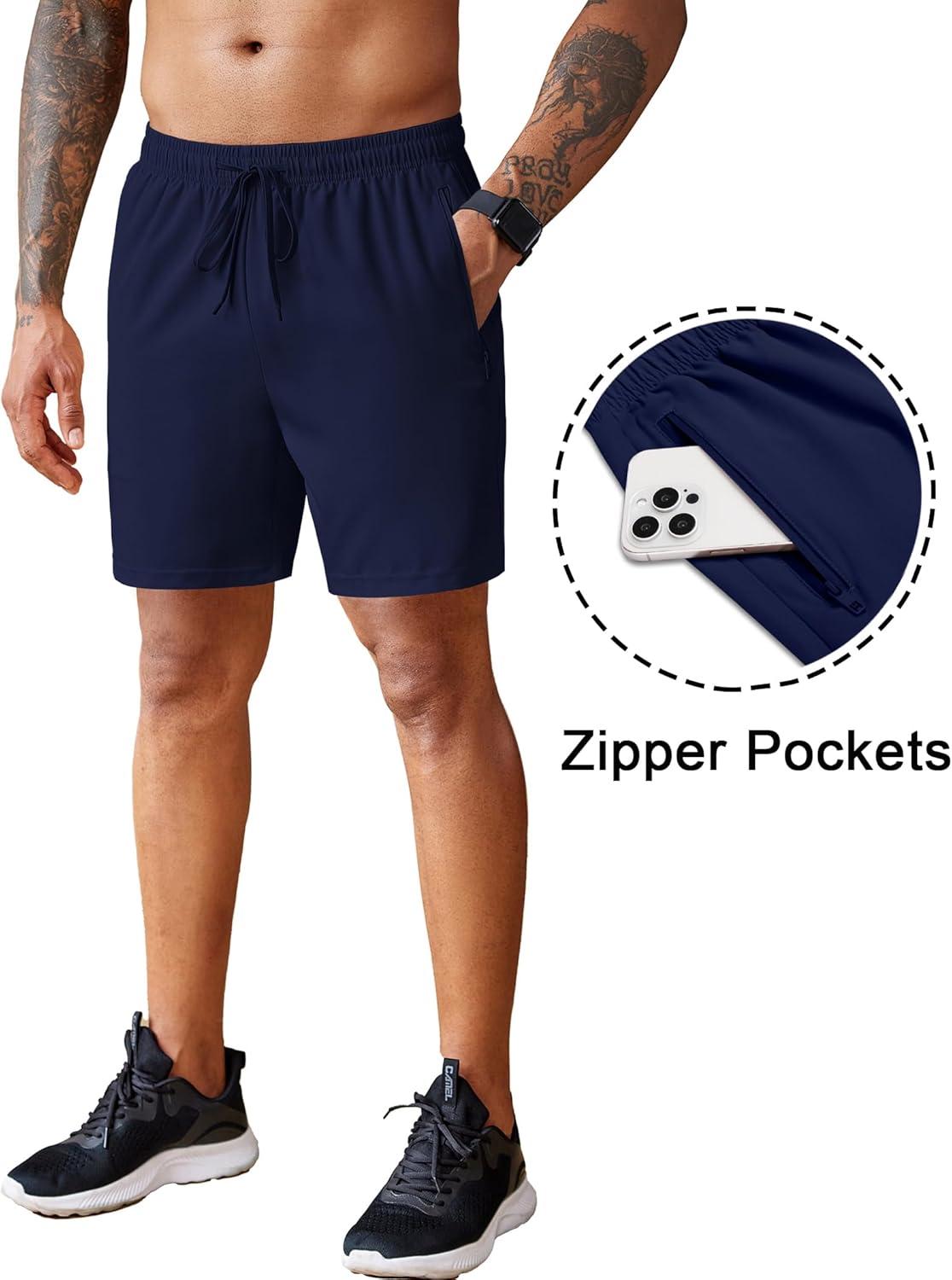 COOFANDY Men’s 2 Pack Workout Gym Shorts 7 Inch / 5 Inch Athletic Shorts Lightweight Casual Jogger Short with Zipper Pockets(3 Pack:navy Blue/Dark Grey/Black)