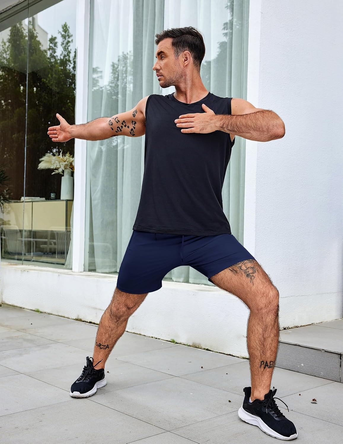 COOFANDY Men’s 2 Pack Workout Gym Shorts 7 Inch / 5 Inch Athletic Shorts Lightweight Casual Jogger Short with Zipper Pockets(3 Pack:dark Grey/Navy Blue/Black)