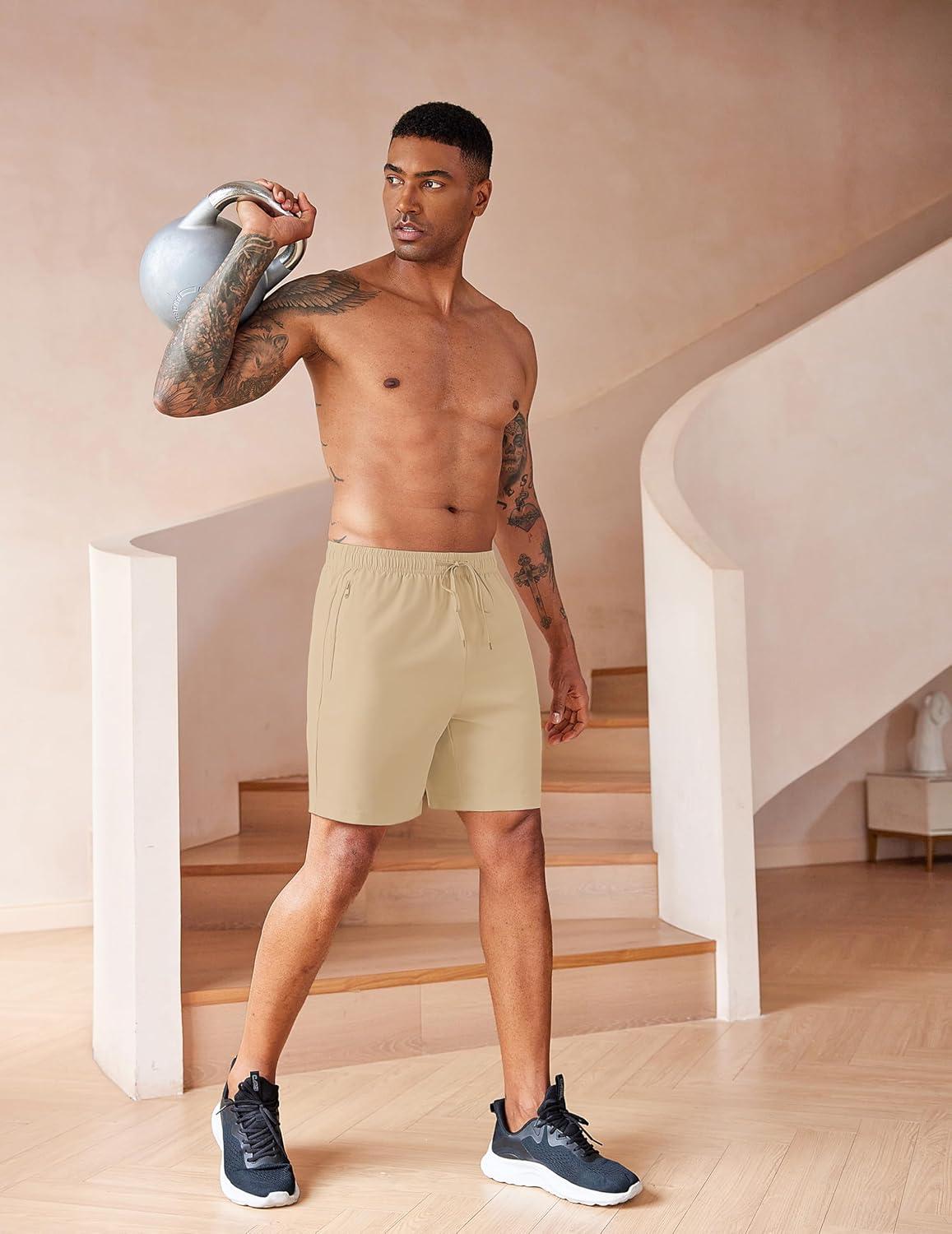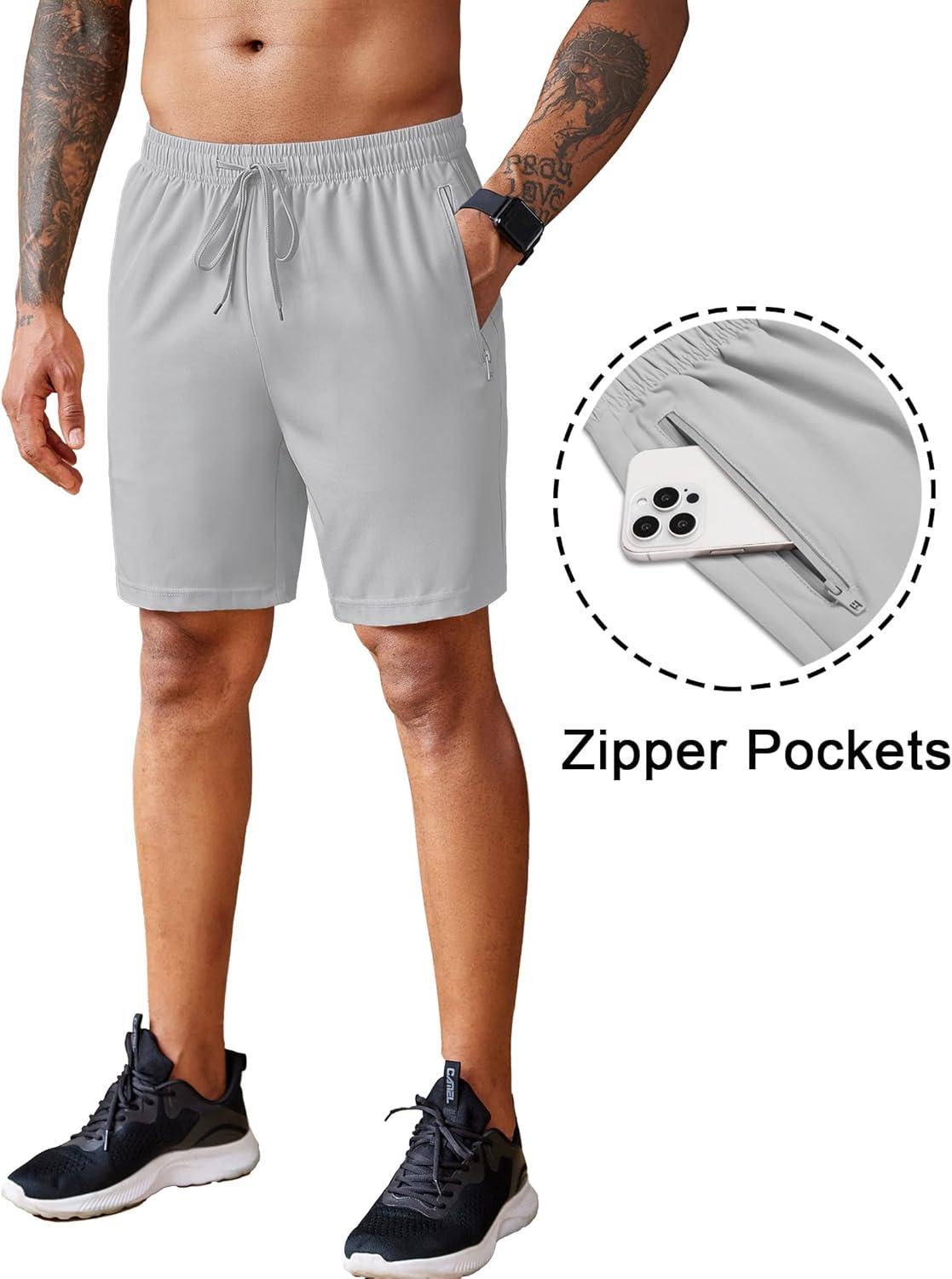 COOFANDY Men's 2 Pack Workout Gym Shorts 7 Inch / 5 Inch Athletic Shorts Lightweight Casual Jogger Short with Zipper Pockets(3 Pack:grey/Khaki/Black)