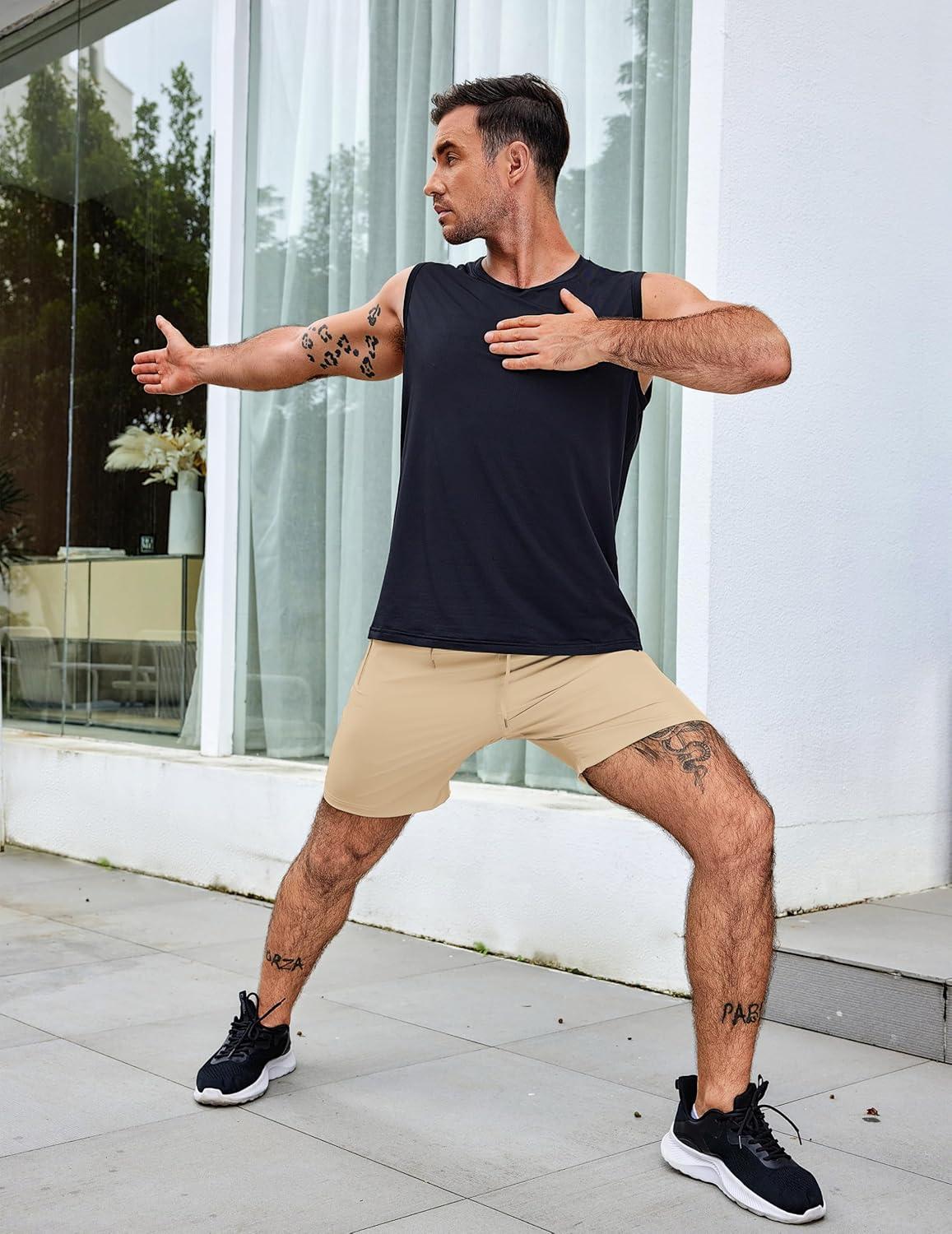 COOFANDY Men's 2 Pack Workout Gym Shorts 7 Inch / 5 Inch Athletic Shorts Lightweight Casual Jogger Short with Zipper Pockets(Khaki / Black)
