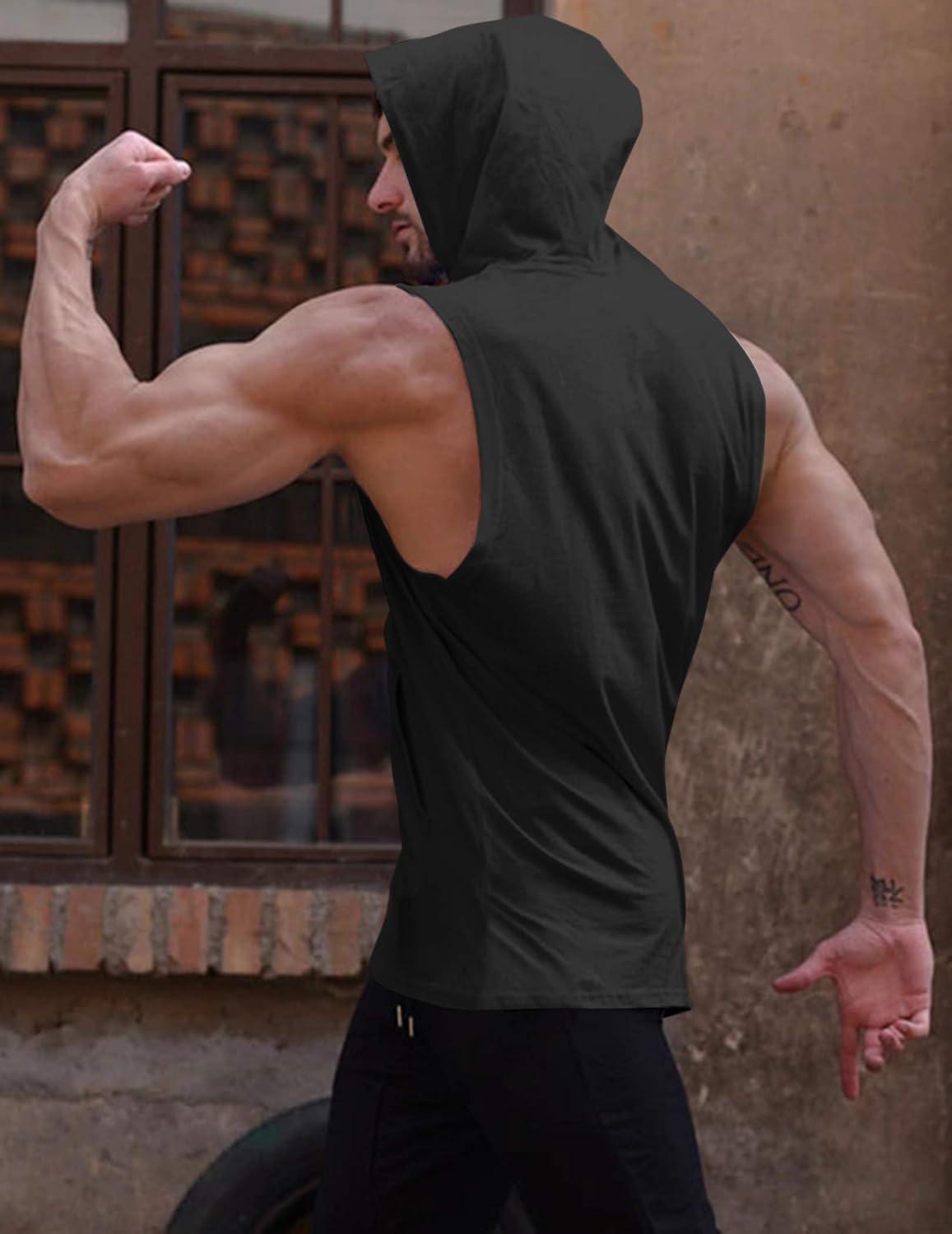 COOFANDY Men’s 2 Pack Workout Hooded Tank Tops Bodybuilding Muscle Cut Off T Shirt Sleeveless Gym Hoodies(Black&white)