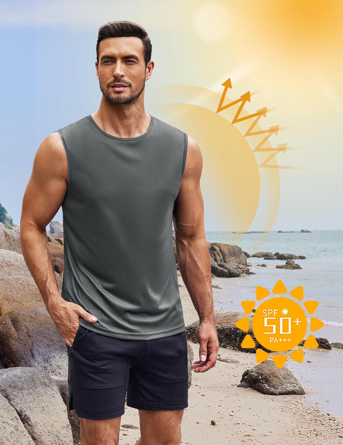 COOFANDY Mens 2 Pack Workout Tank Top UPF 50+ Quick Dry Sleeveless Swim Shirt Gym Muscle Athletic Summer Beach T Shirts(Dark Grey/Light Blue)
