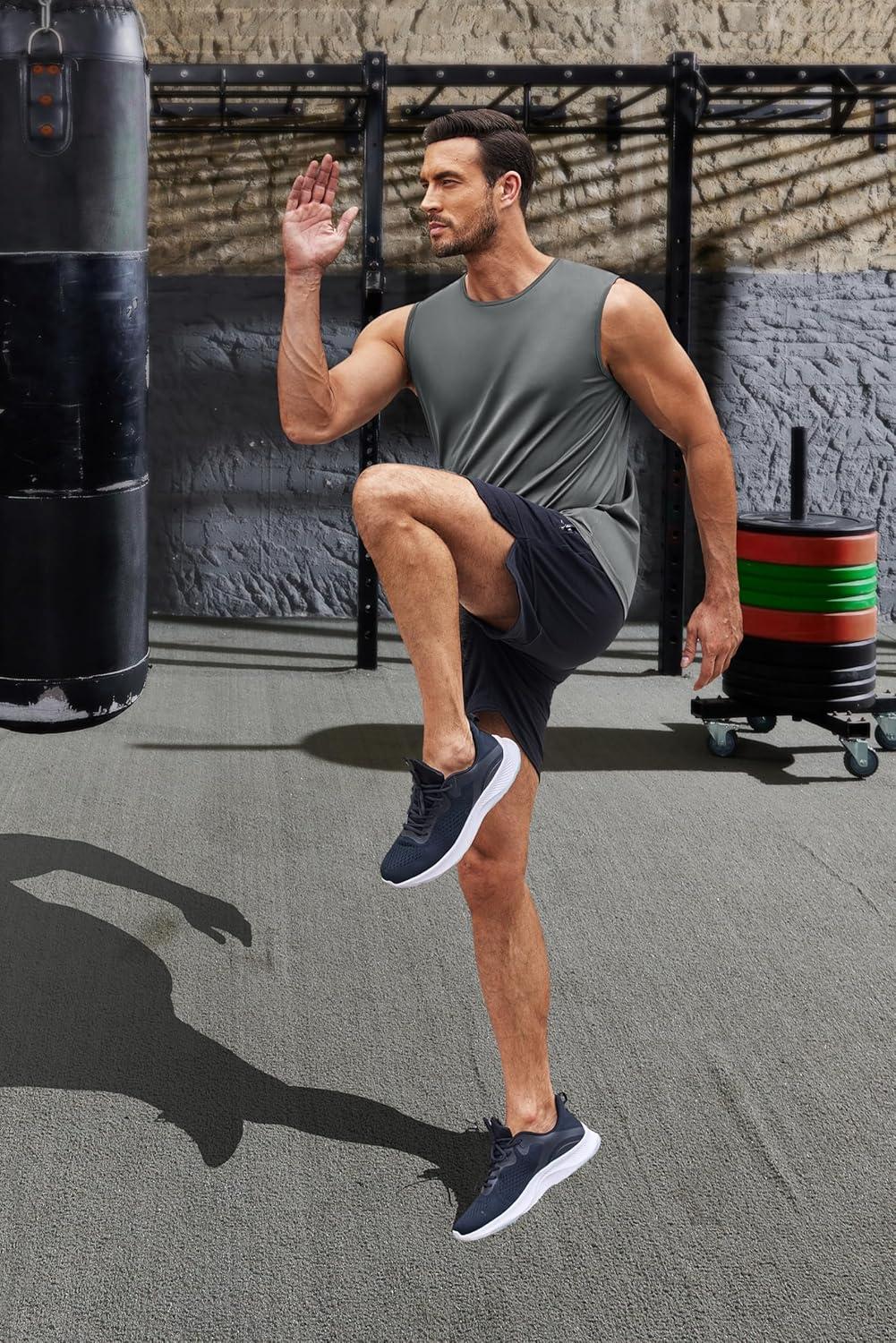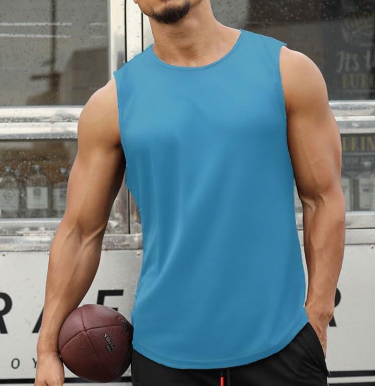 COOFANDY Mens 2 Pack Workout Tank Top UPF 50+ Quick Dry Sleeveless Swim Shirt Gym Muscle Athletic Summer Beach T Shirts(Blue/Navy Blue)