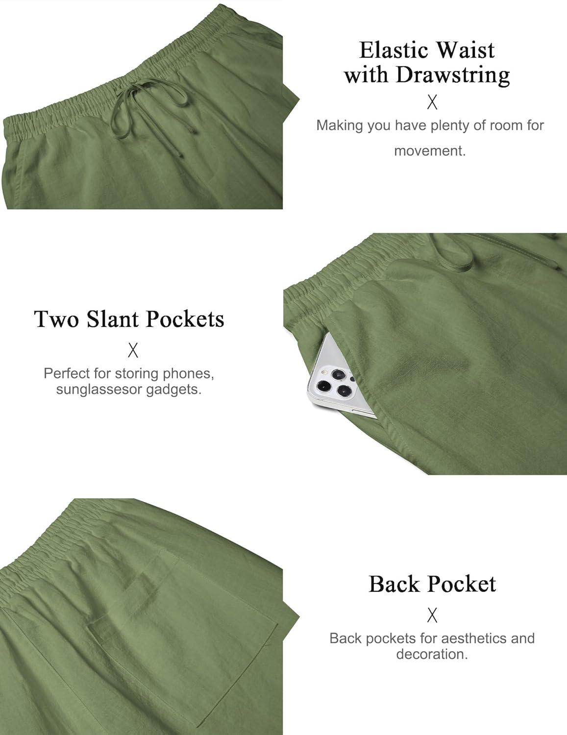 COOFANDY Men’s 2 Piece Cotton Linen Sets Summer Beach Outfits Casual Short Sleeve Henley Shirts and Vacation Shorts(Army Green)