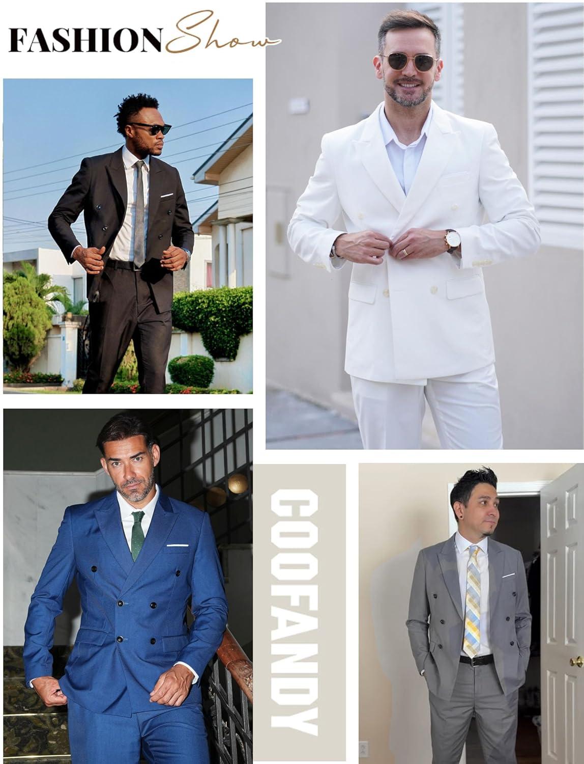 COOFANDY Men’s 2 Piece Double Breasted Suits Slim Fit Tuxedo Jacket and Dress Pants Set for Wedding Business Prom(White)