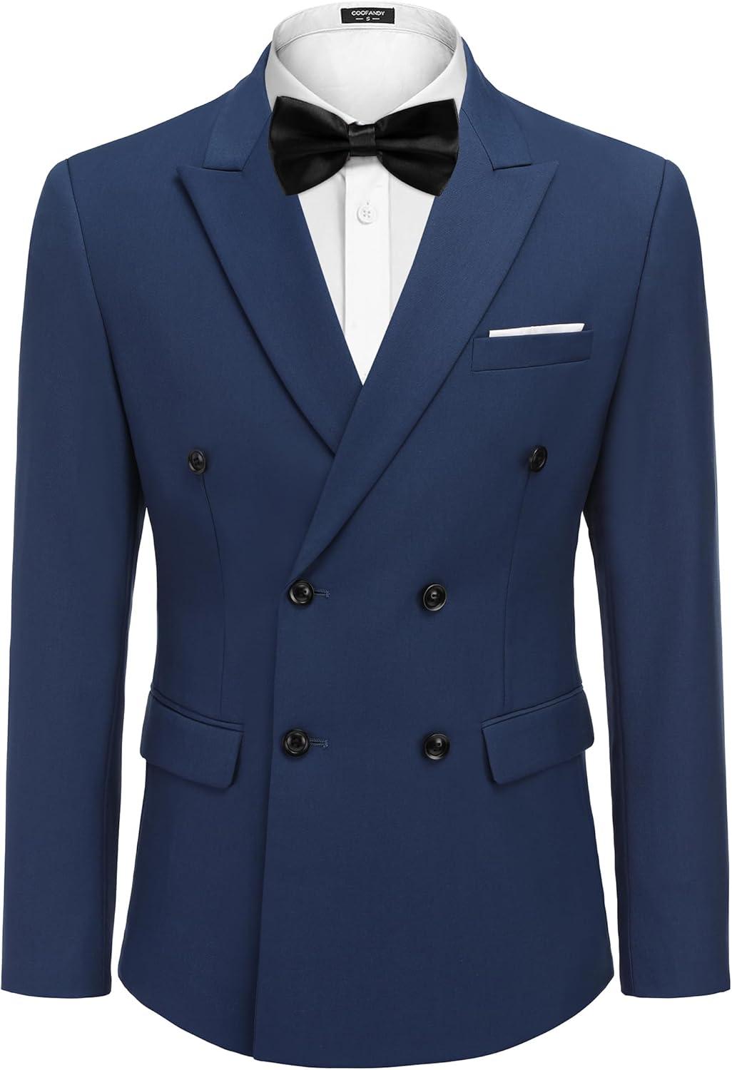 COOFANDY Men's 2 Piece Double Breasted Suits Slim Fit Tuxedo Jacket and Dress Pants Set for Wedding Business Prom(Navy)