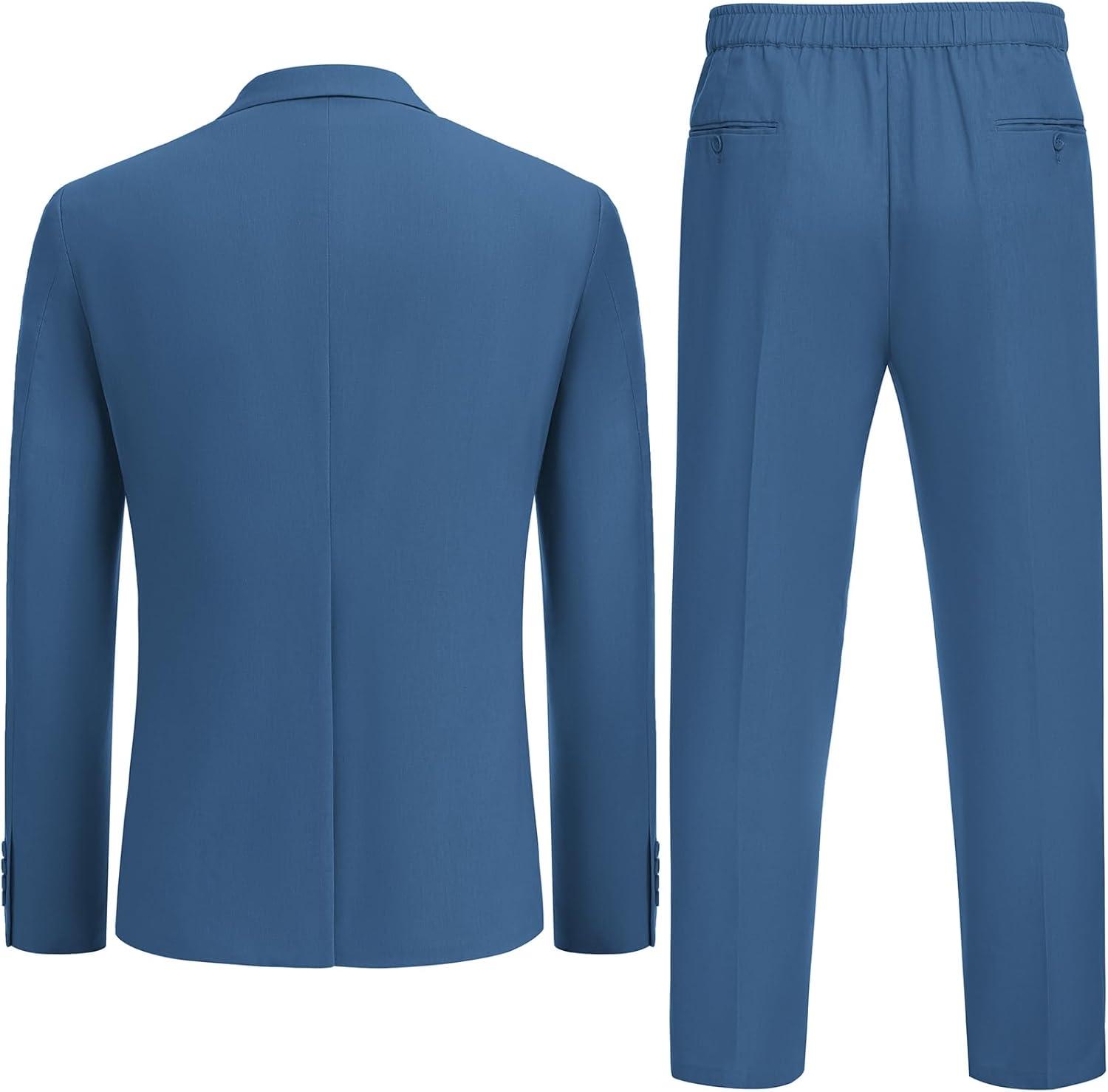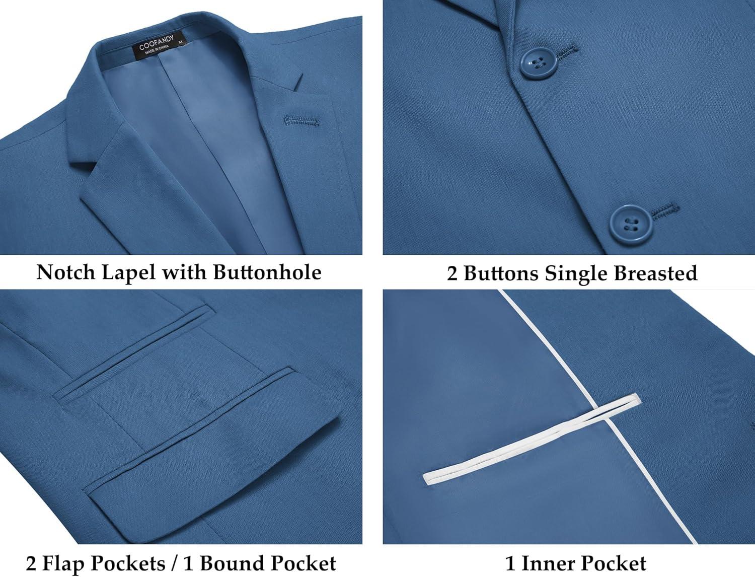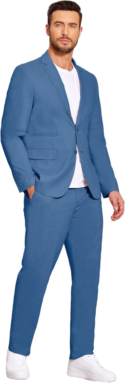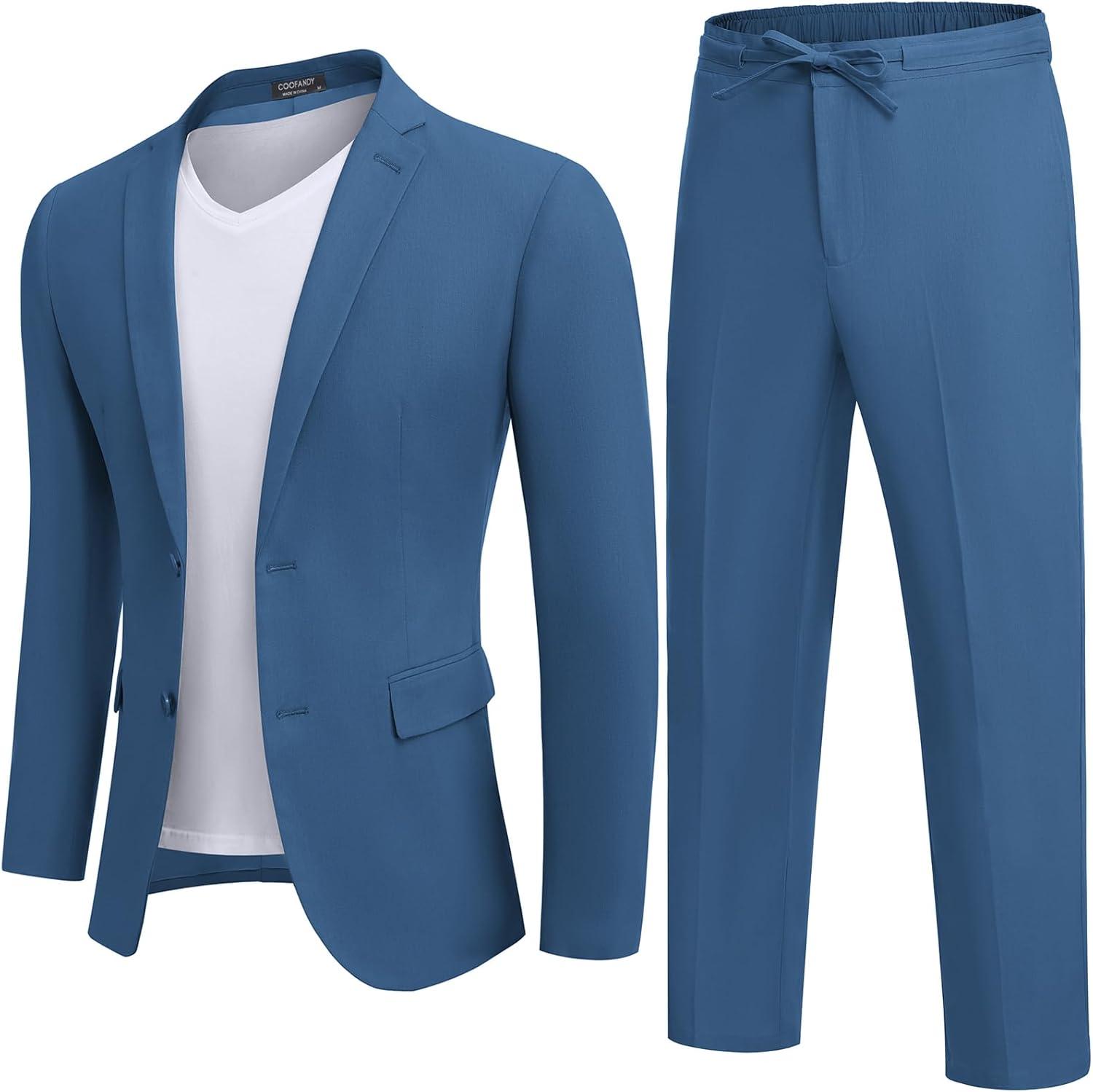 COOFANDY Men's 2 Piece Linen Suits Set Regular Fit Casual Lightweight Blazer Jacket and Pants(Blue)