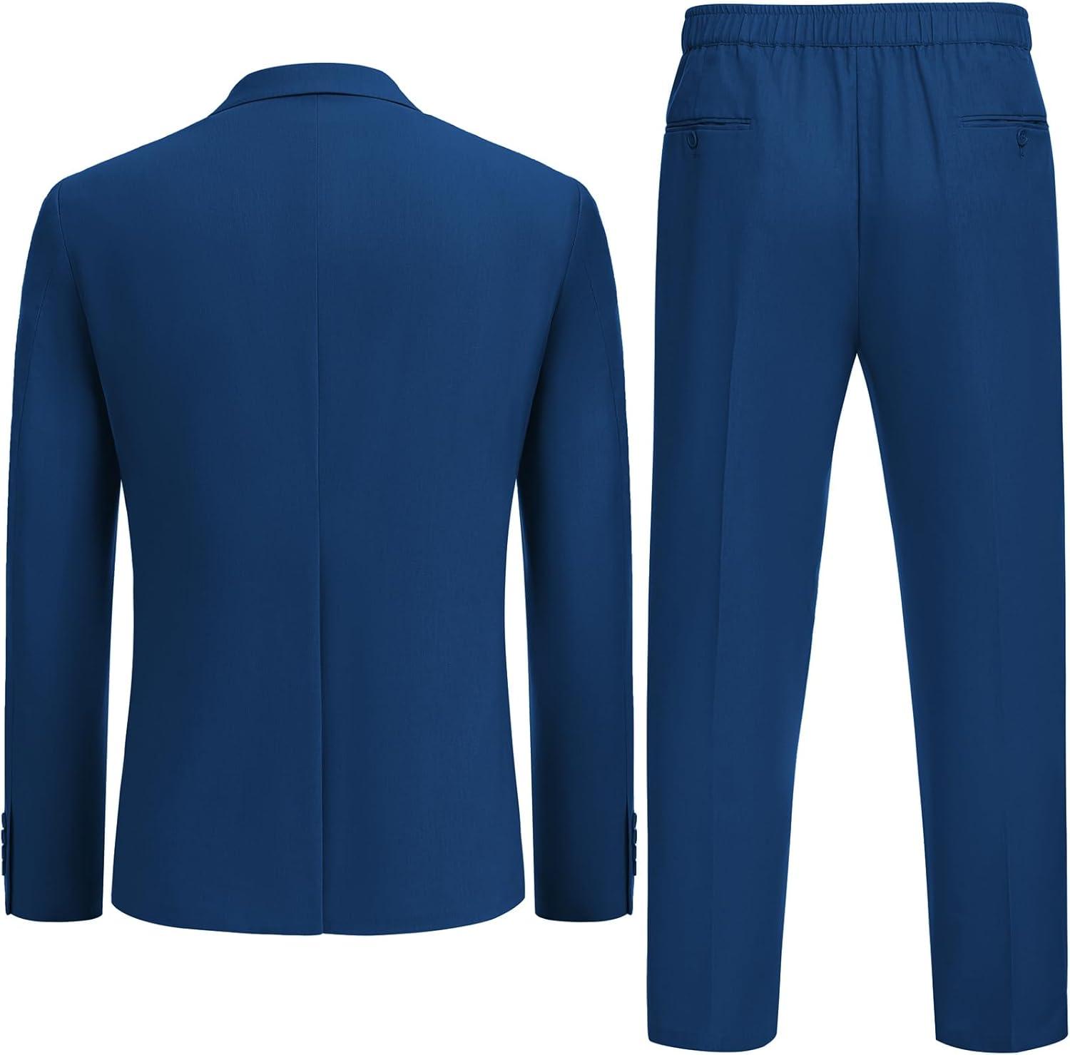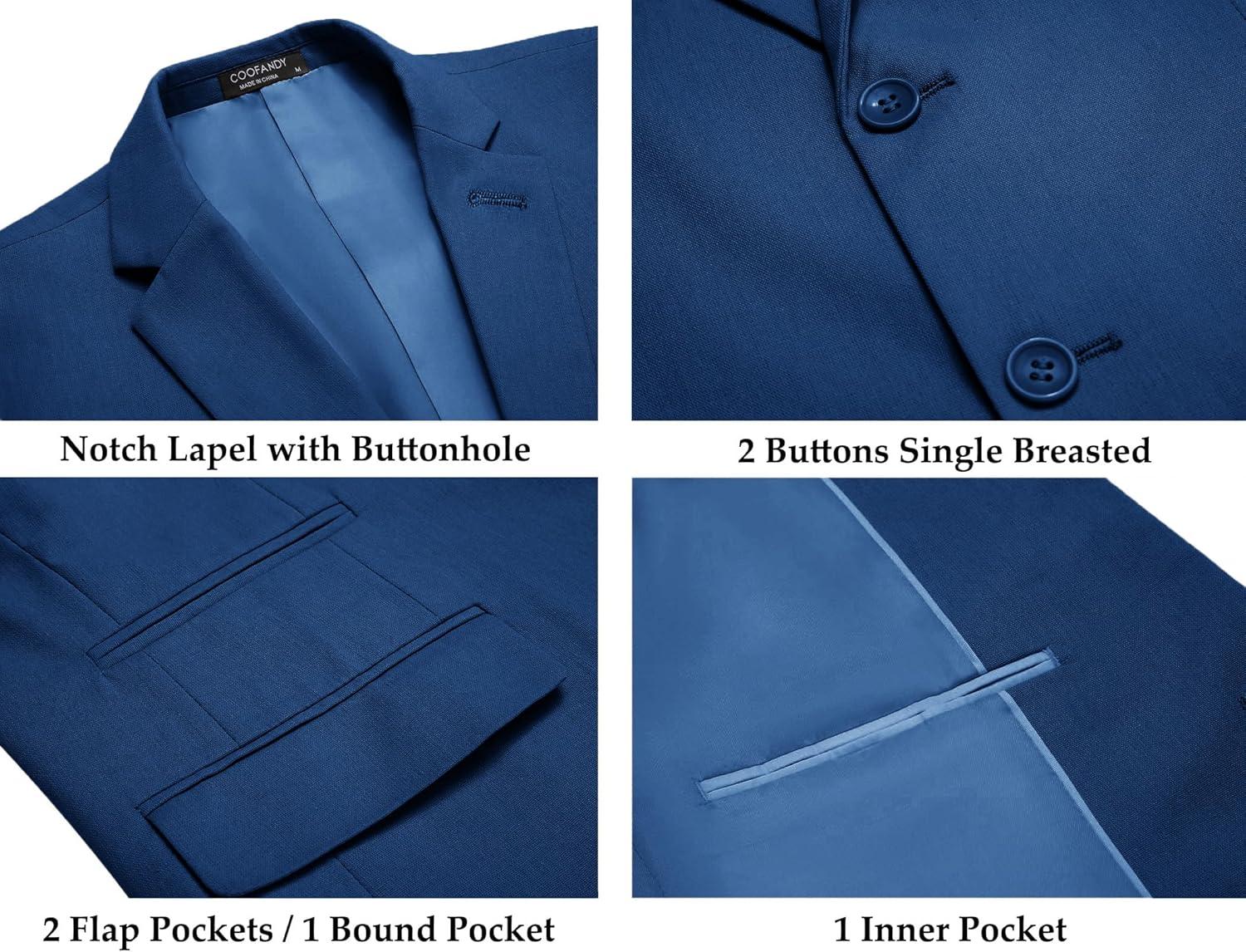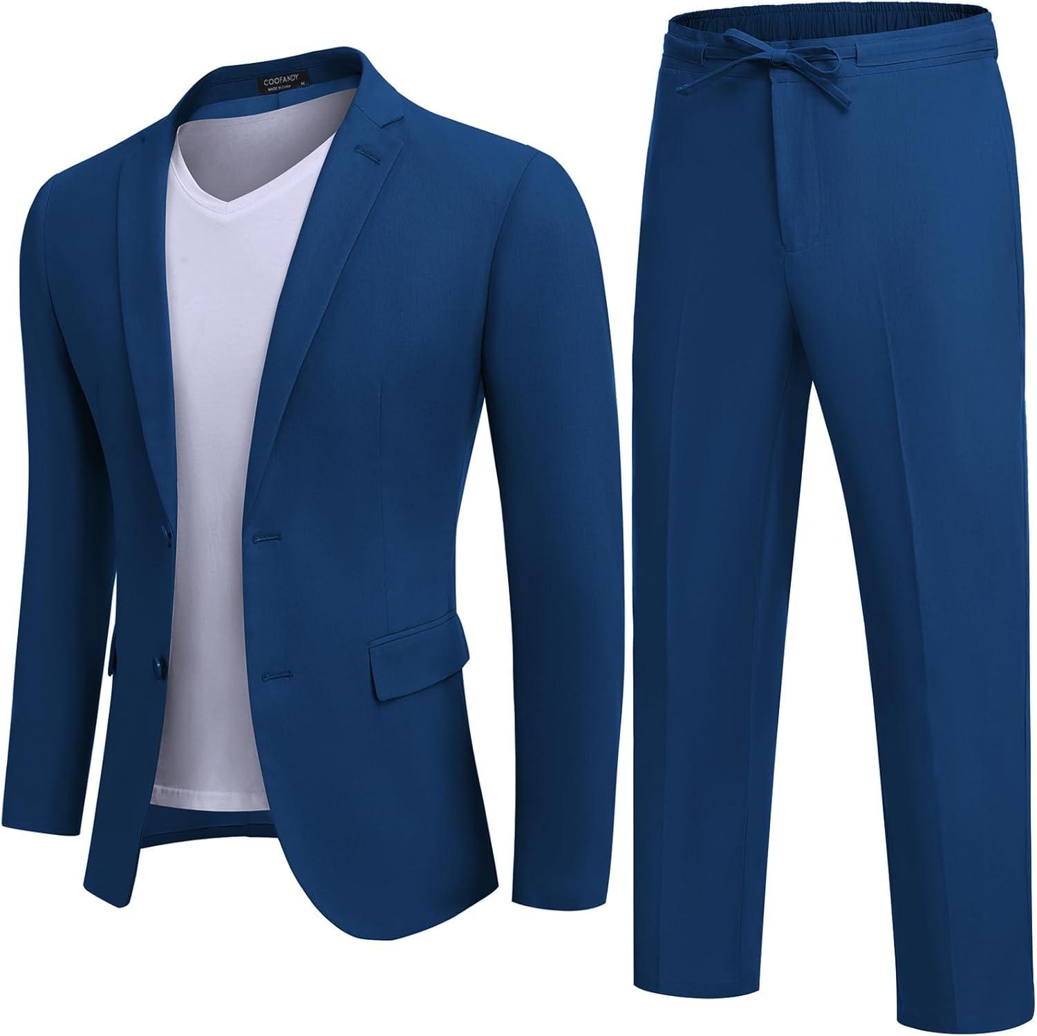 COOFANDY Men's 2 Piece Linen Suits Set Regular Fit Casual Lightweight Blazer Jacket and Pants(Deep Blue)