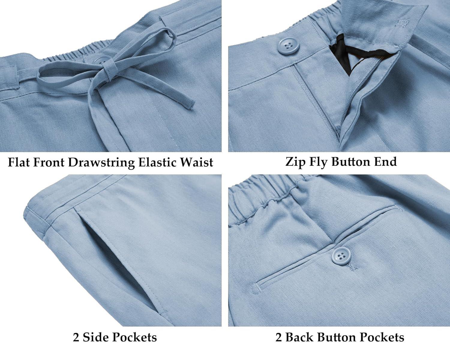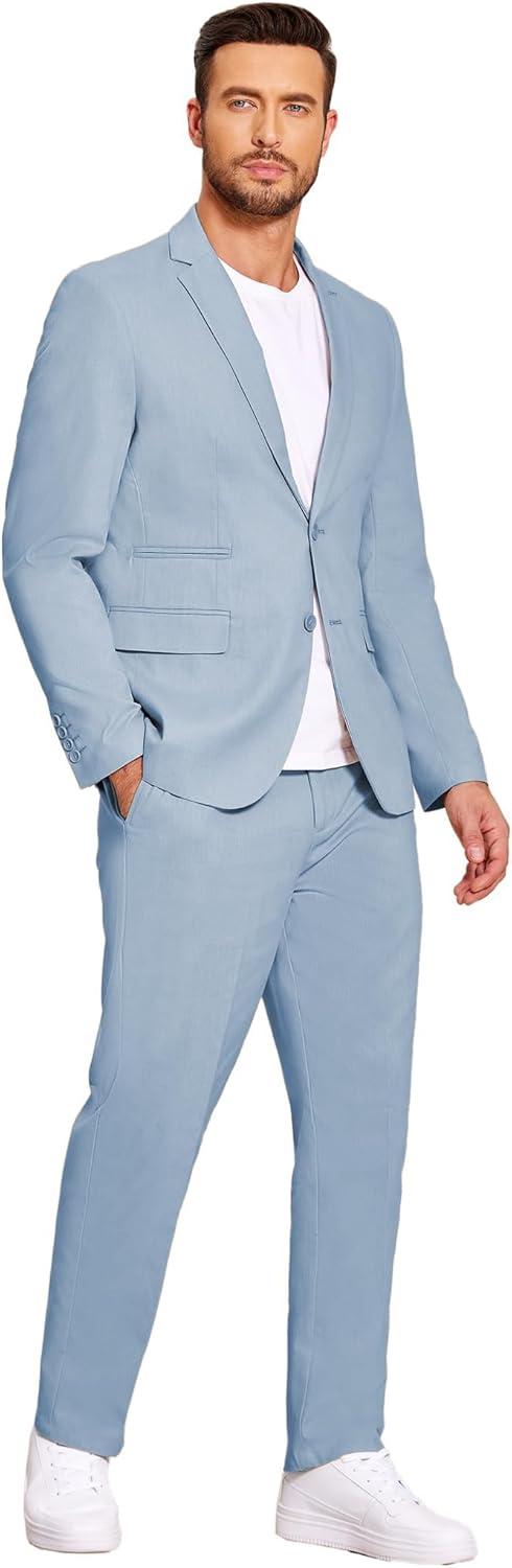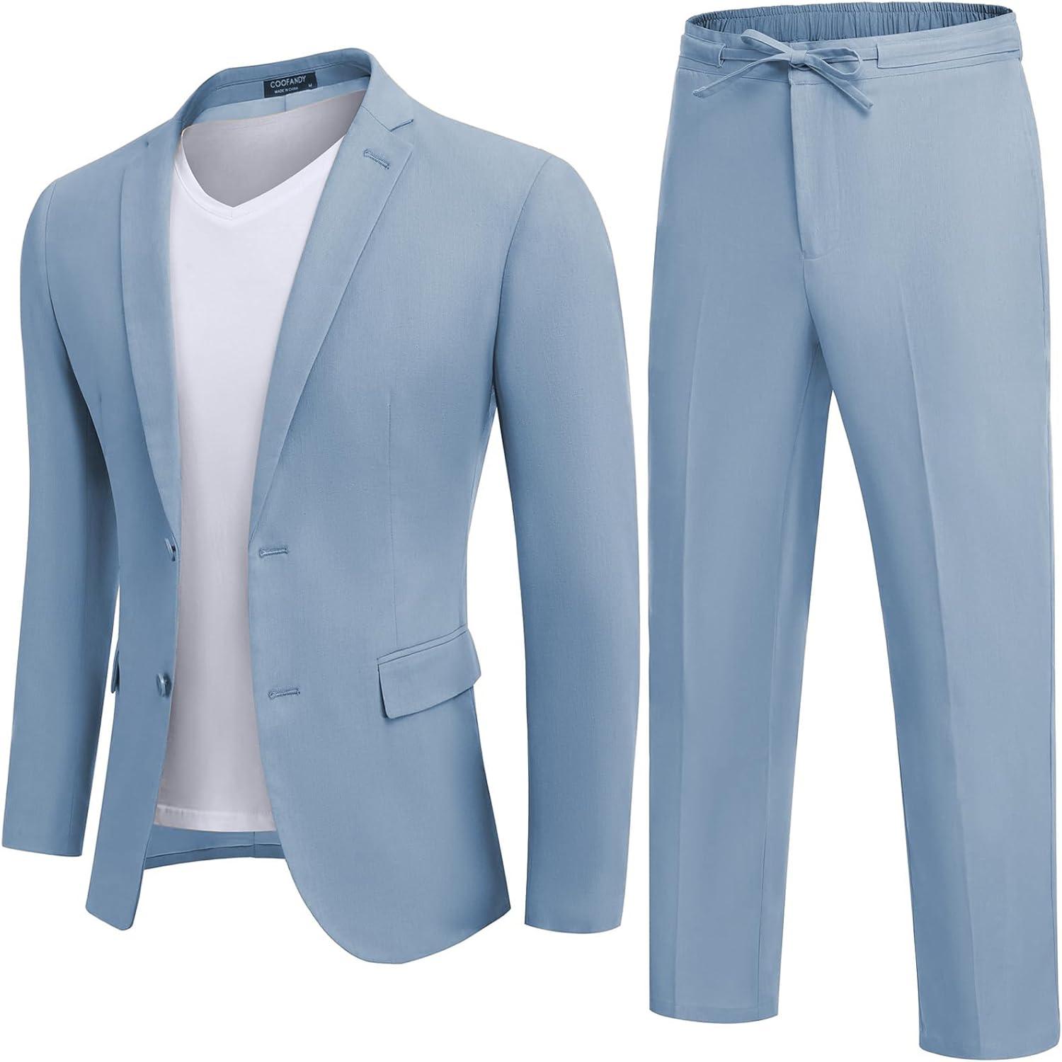 COOFANDY Men's 2 Piece Linen Suits Set Regular Fit Casual Lightweight Blazer Jacket and Pants(Light Blue)