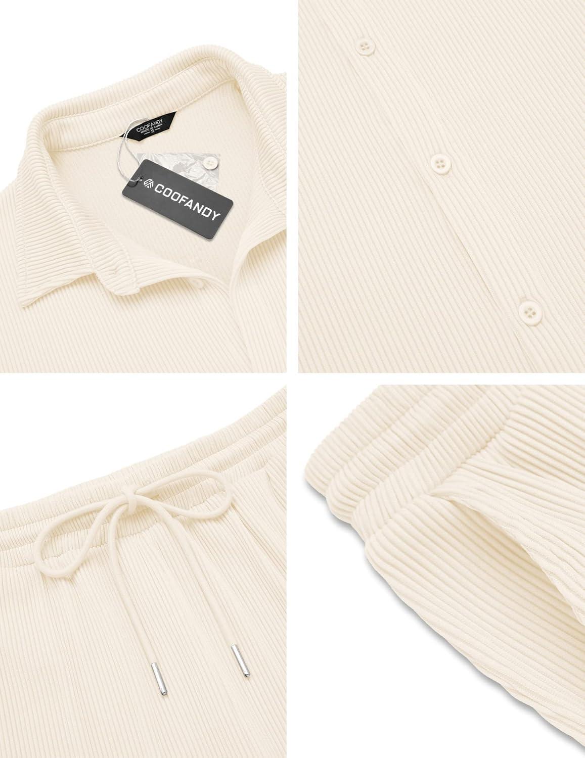 COOFANDY Men’s 2 Piece Outfit Casual Short Sleeve Button Down Shirt Beach Summer Loose Pant Sets(Beige)