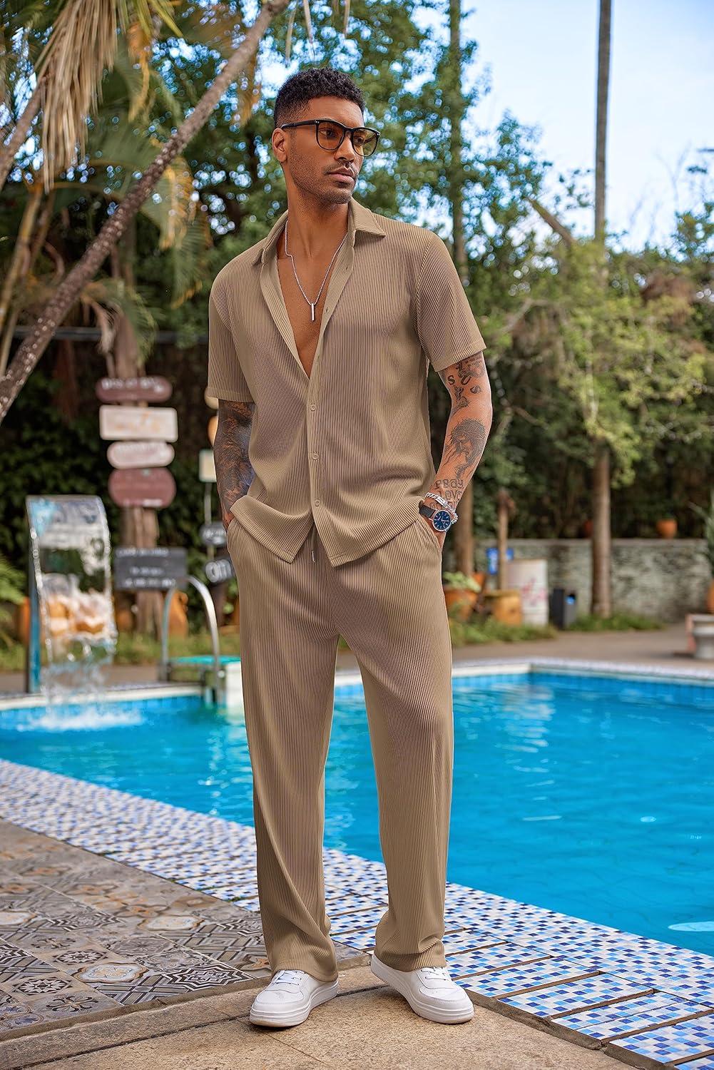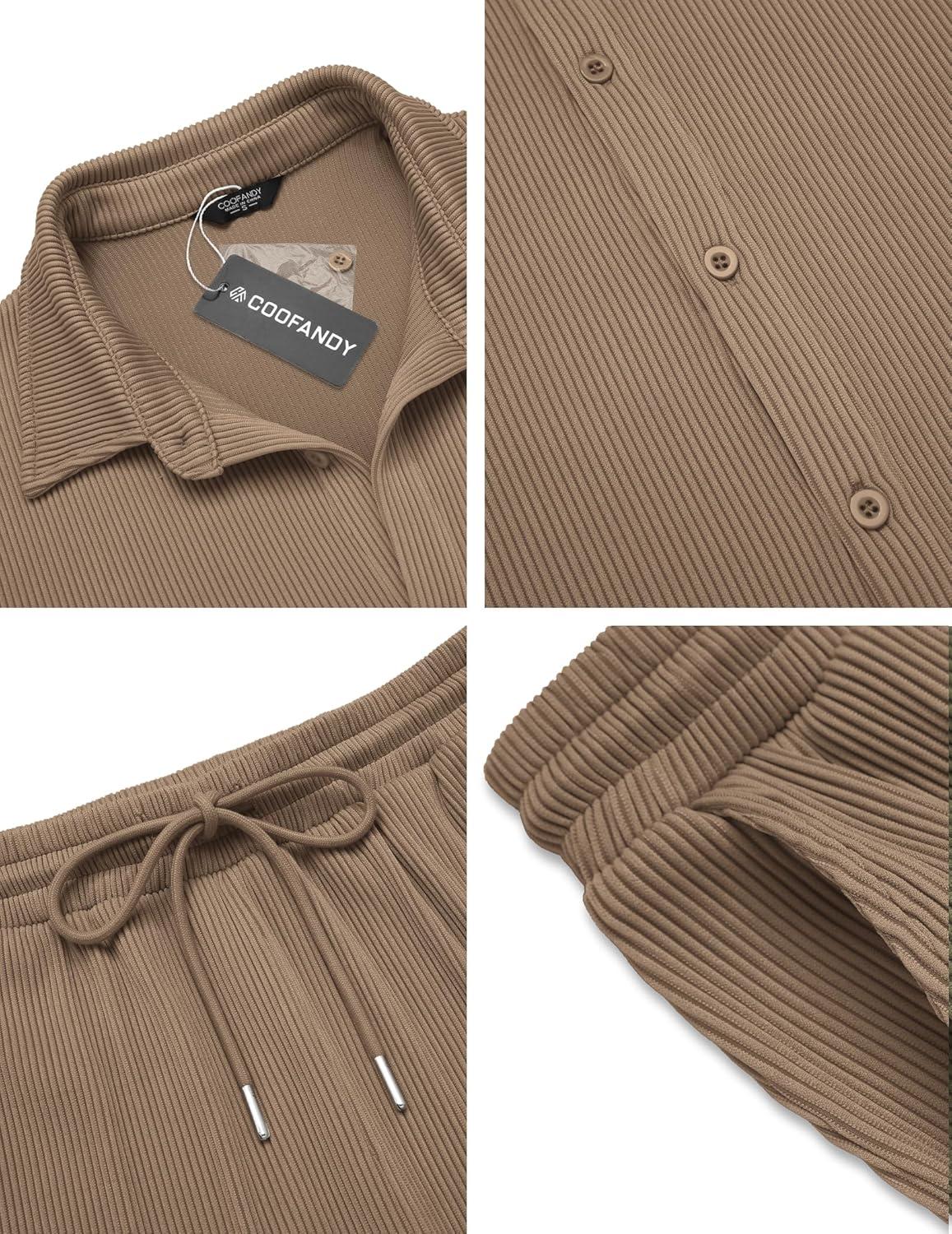 Get more for your money with our exclusive bundle deals on COOFANDY Men’s 2 Piece Outfit Casual Short Sleeve Button Down Shirt Beach Summer Loose Pant Sets(Brown) and accessories.