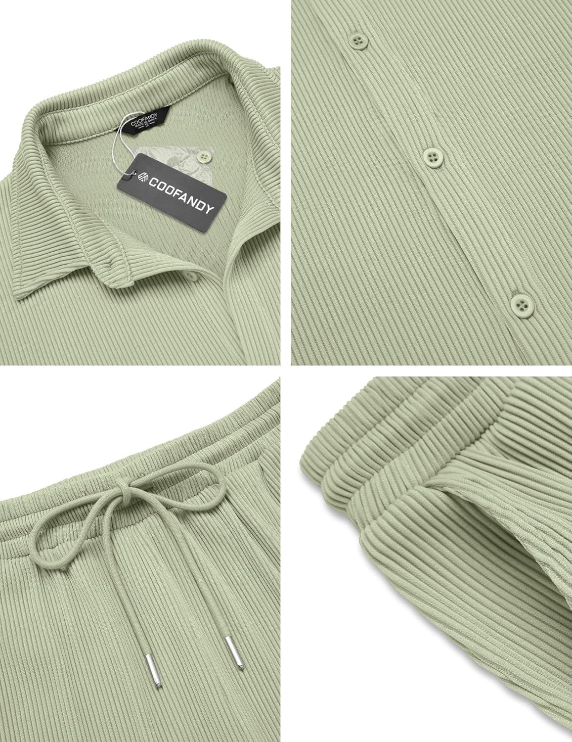 imageCOOFANDY Mens 2 Piece Outfit Casual Short Sleeve Button Down Shirt Beach Summer Loose Pant SetsLight Green