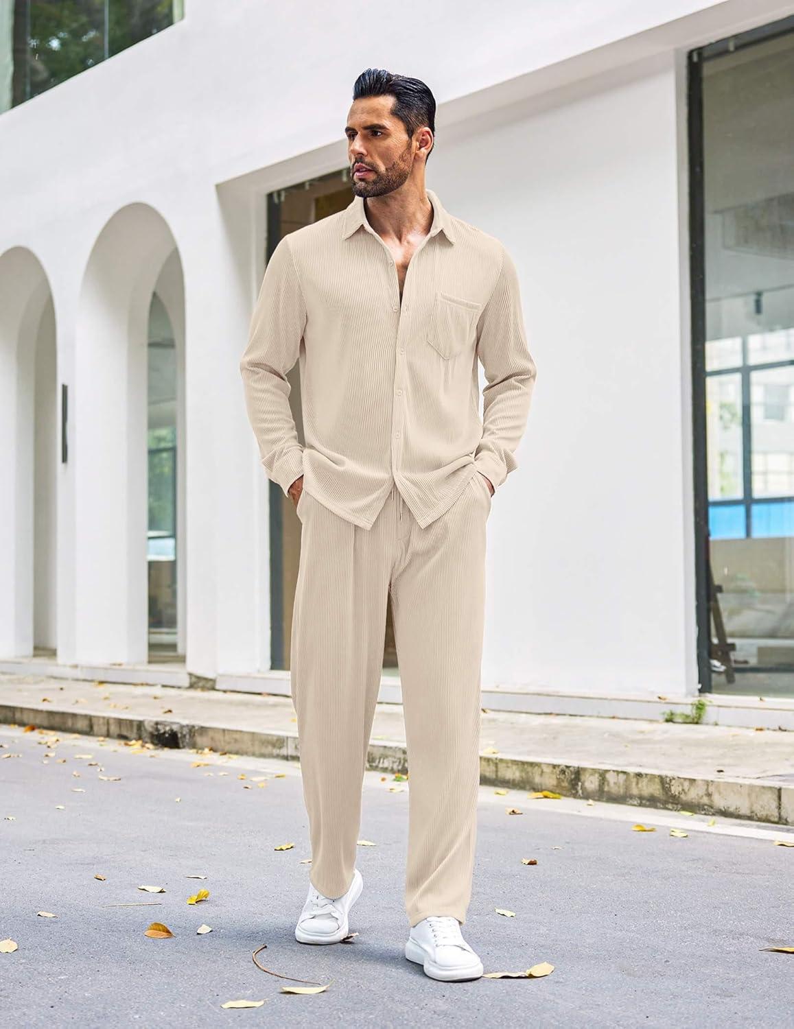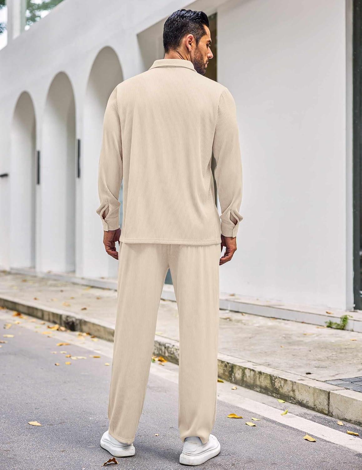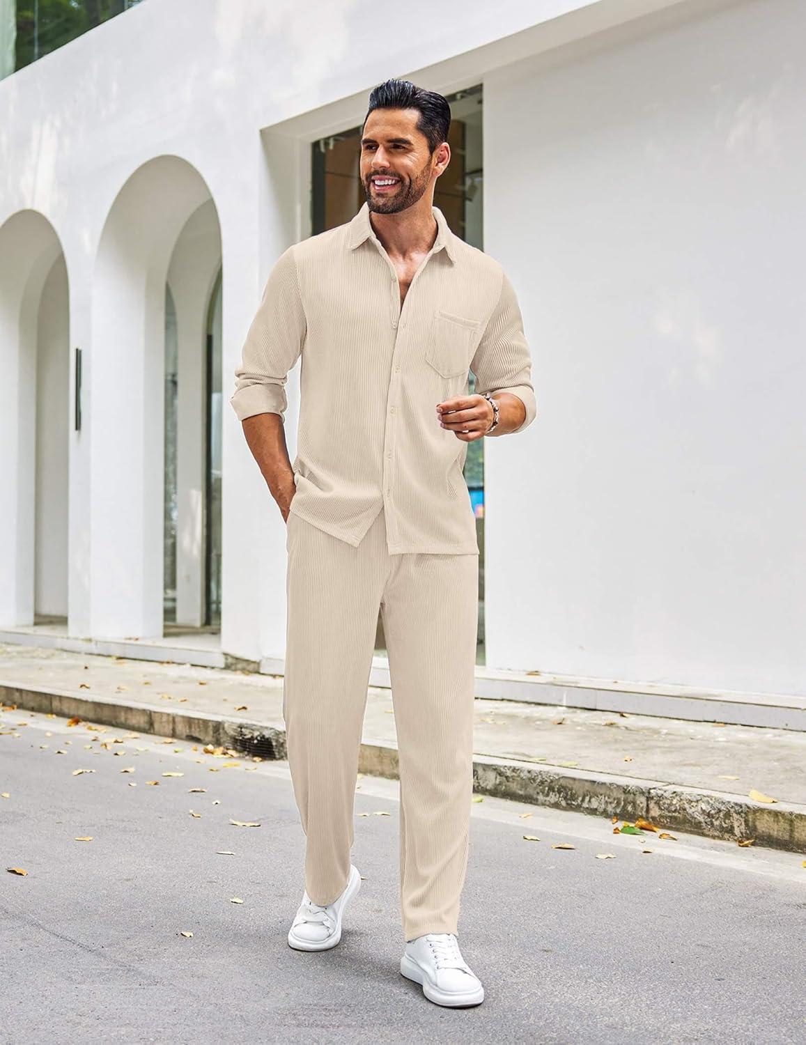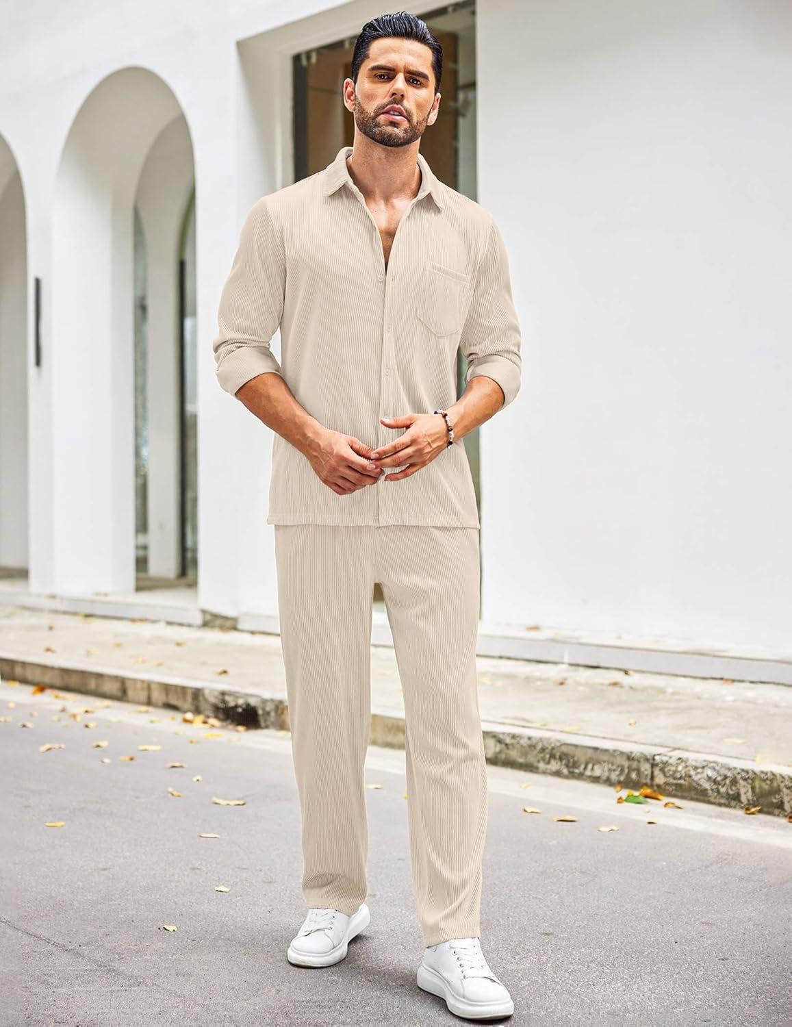 COOFANDY Men’s 2 Piece Outfits Casual Long Sleeve Button Down Shirt and Pants Sets Loungewear Streetwear Walking Suits