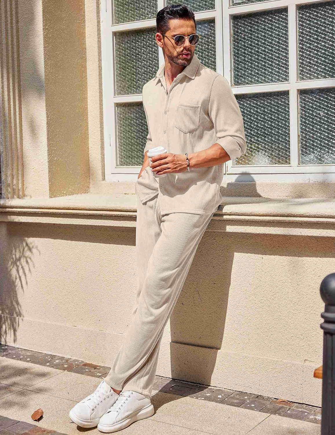 COOFANDY Men's 2 Piece Outfits Casual Long Sleeve Button Down Shirt and Pants Sets Loungewear Streetwear Walking Suits