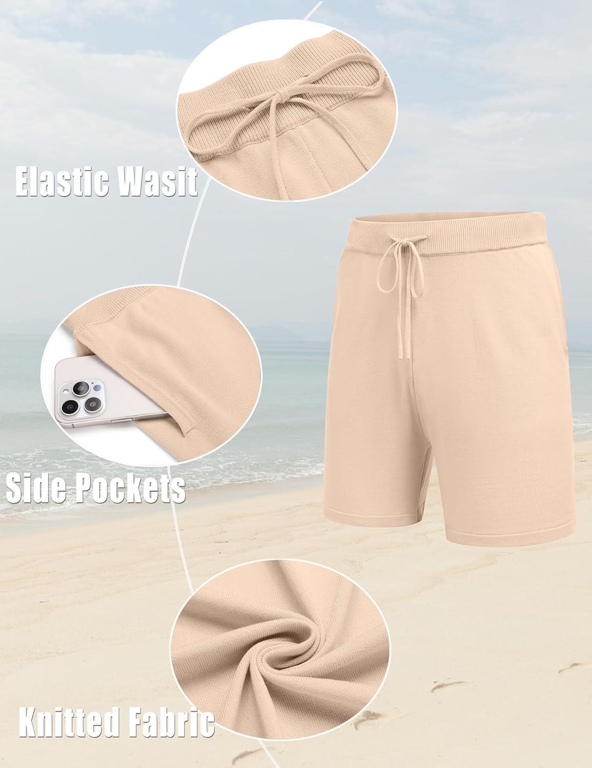 COOFANDY Men’s 2 Piece Outfits Summer Short Sets Vintage Knit Button Down Shirt Short Sleeve Polo Casual Beach Suits(Light Khaki)