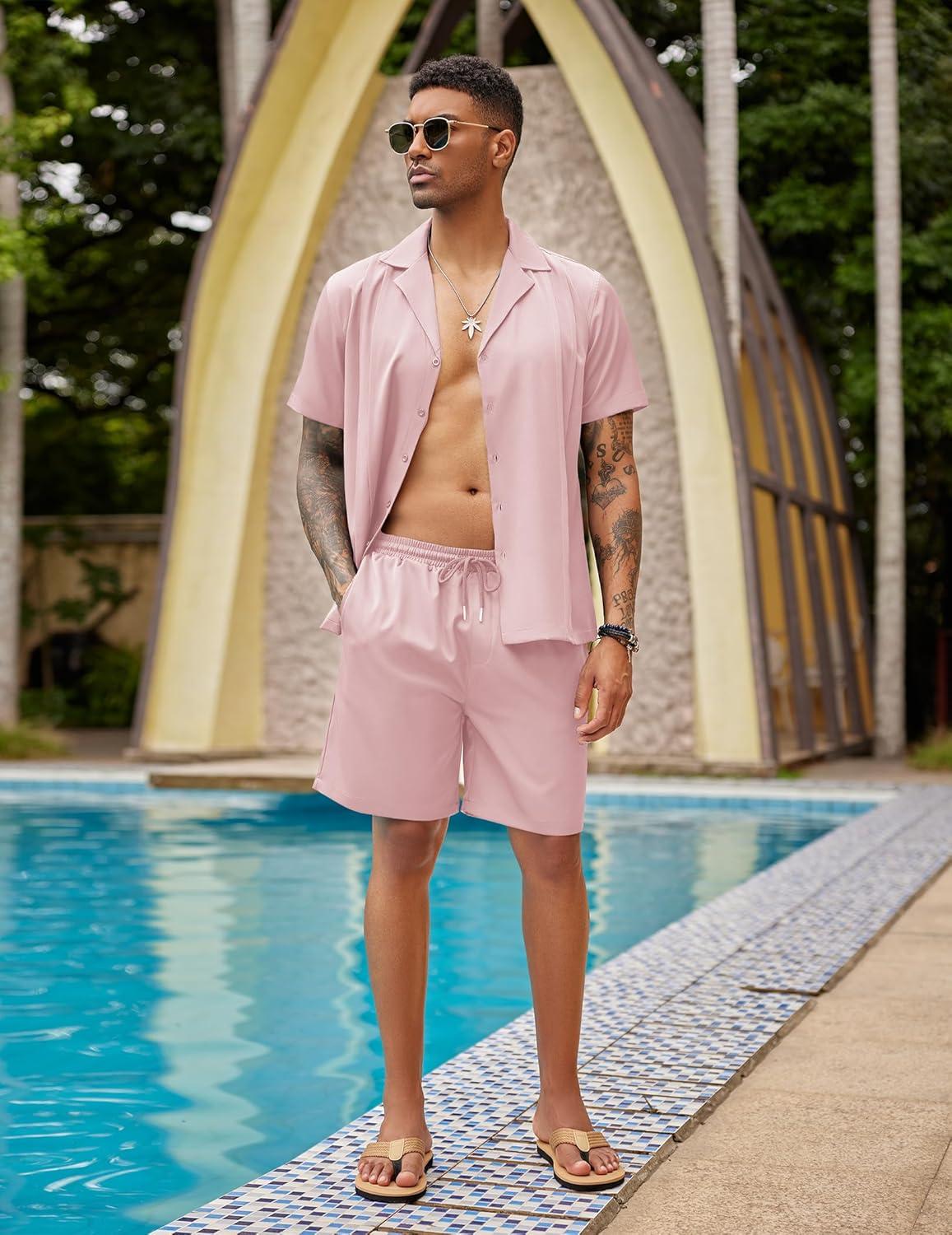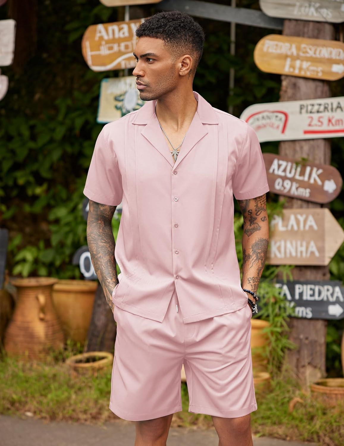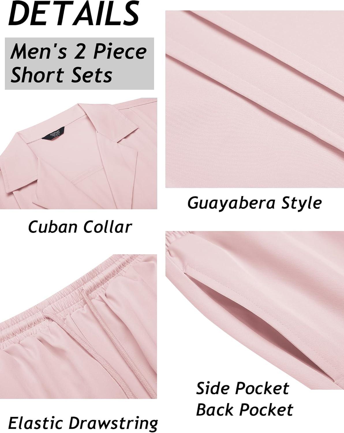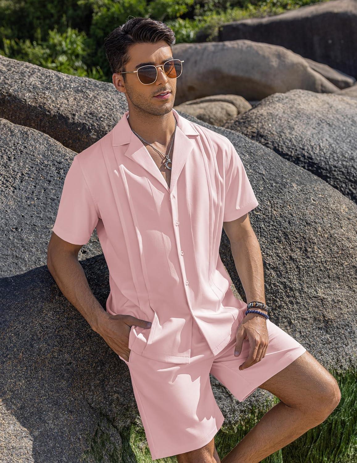 Get more for your money with our exclusive bundle deals on COOFANDY Mens 2 Piece Short Set Guayabera Button Down Shirt Casual Summer Beach Outfits(Pink) and accessories.