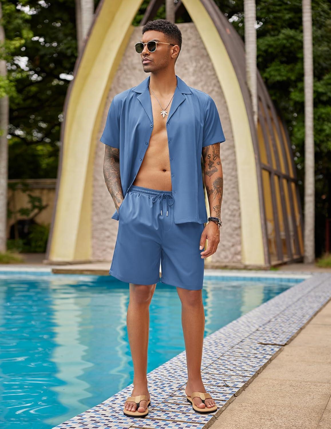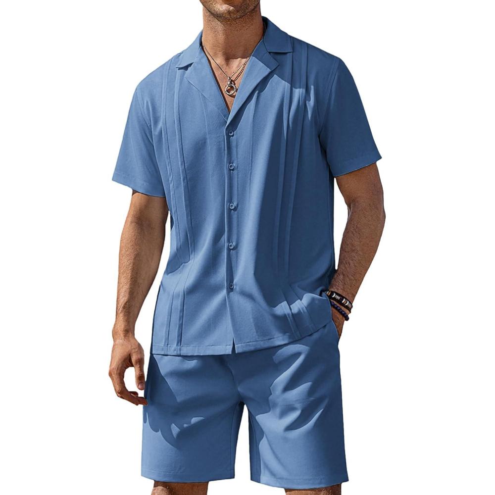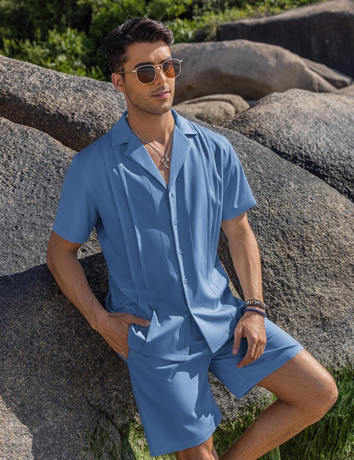 Don’t miss out on our limited-time offer: buy COOFANDY Mens 2 Piece Short Set Guayabera Button Down Shirt Casual Summer Beach Outfits(Royal Blue), get {accessory} free!