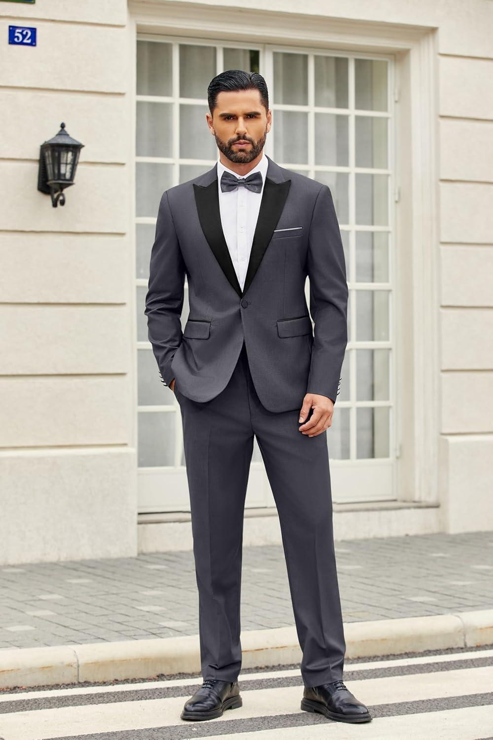 COOFANDY Men's 2 Piece Suit Slim Fit One Button Tuxedo Jacket Pants for Wedding Prom Business(Deep Grey)