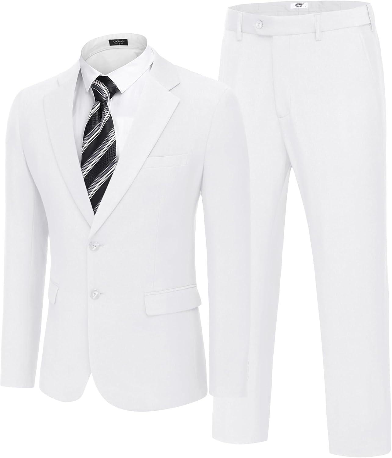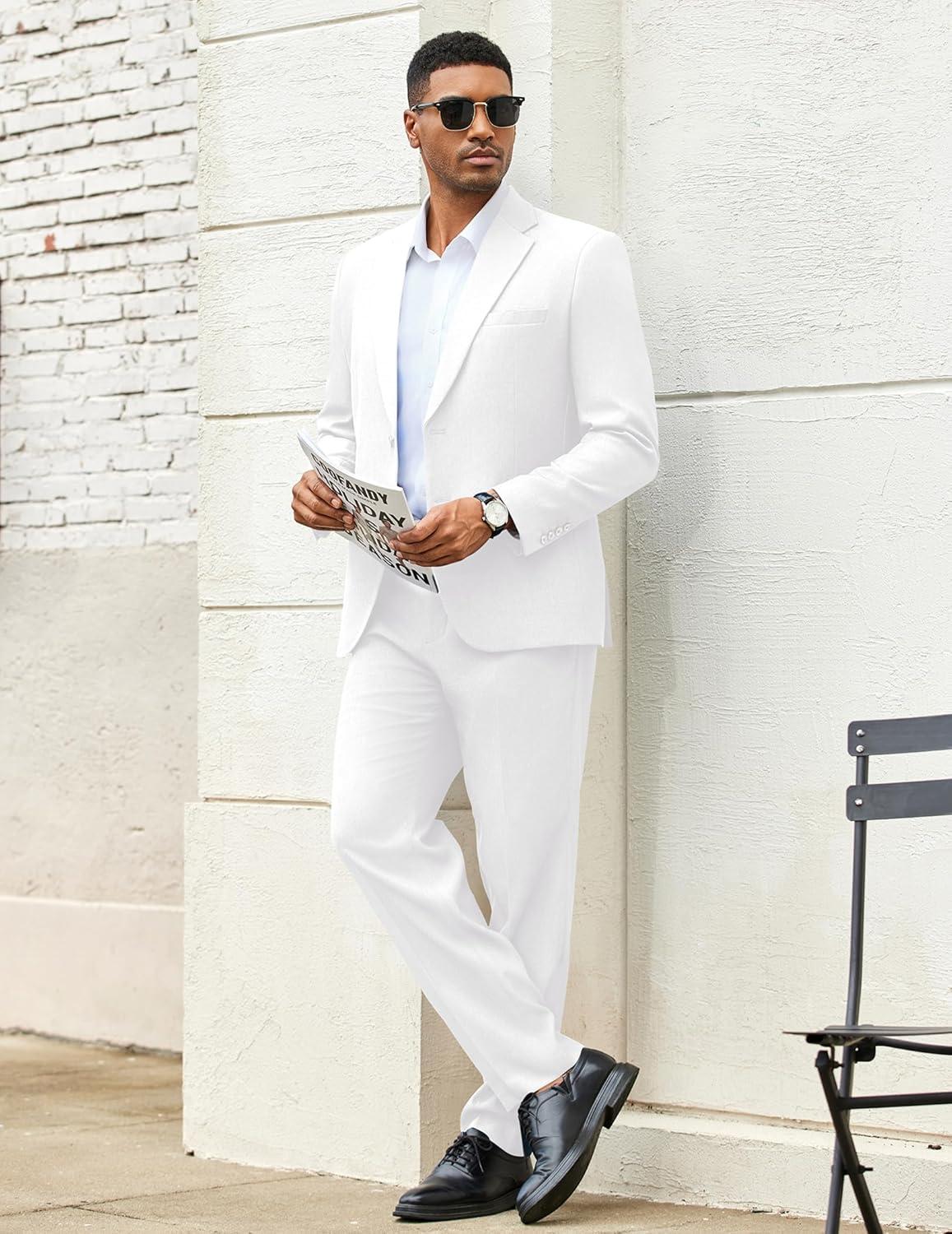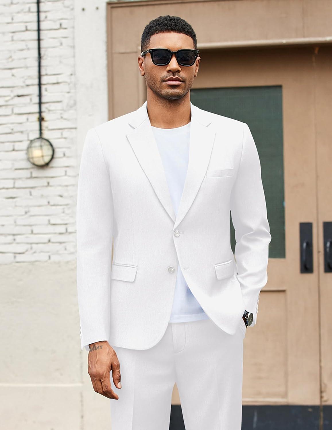COOFANDY Men’s 2 Piece Suit Slim Fit Two Buttons Dress Suits Solid Jacket and Pants Set Tuxedo for Wedding Prom Business(White)