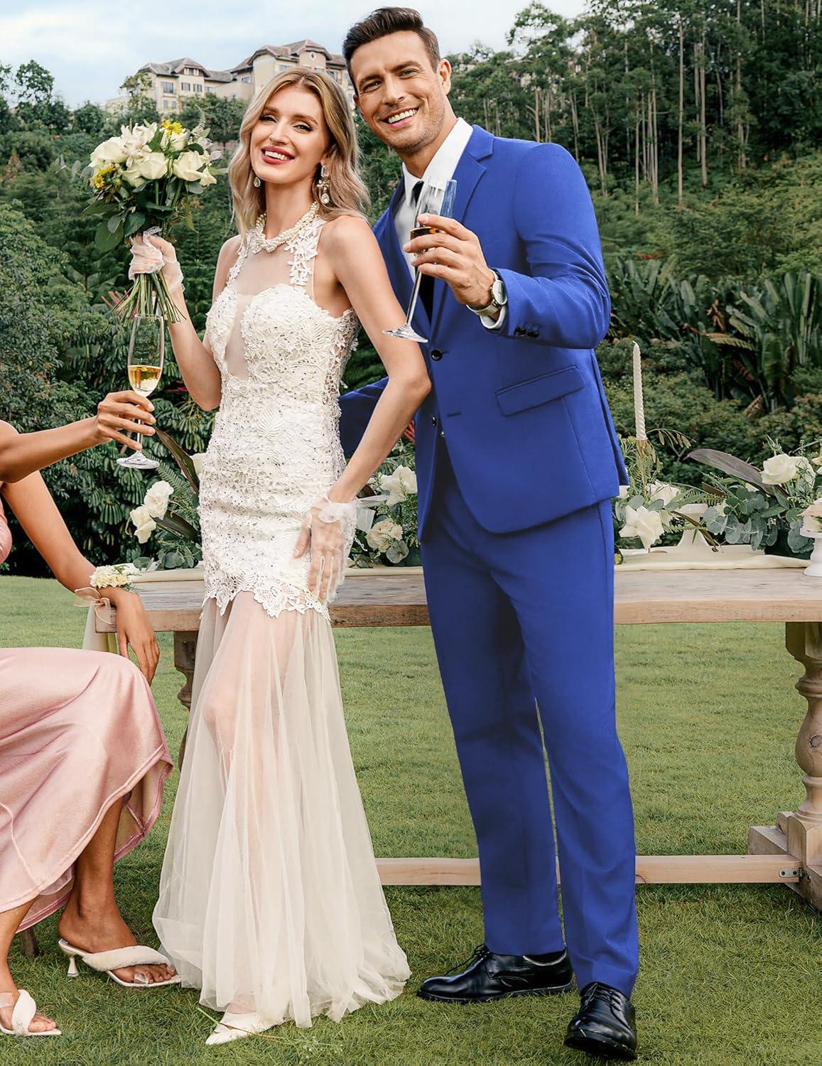 COOFANDY Men's 2 Piece Suits Classic Fit 2 Button Dress Suits Tuxedo Jacket Blazer for Wedding Business Dinner Prom(Blue)