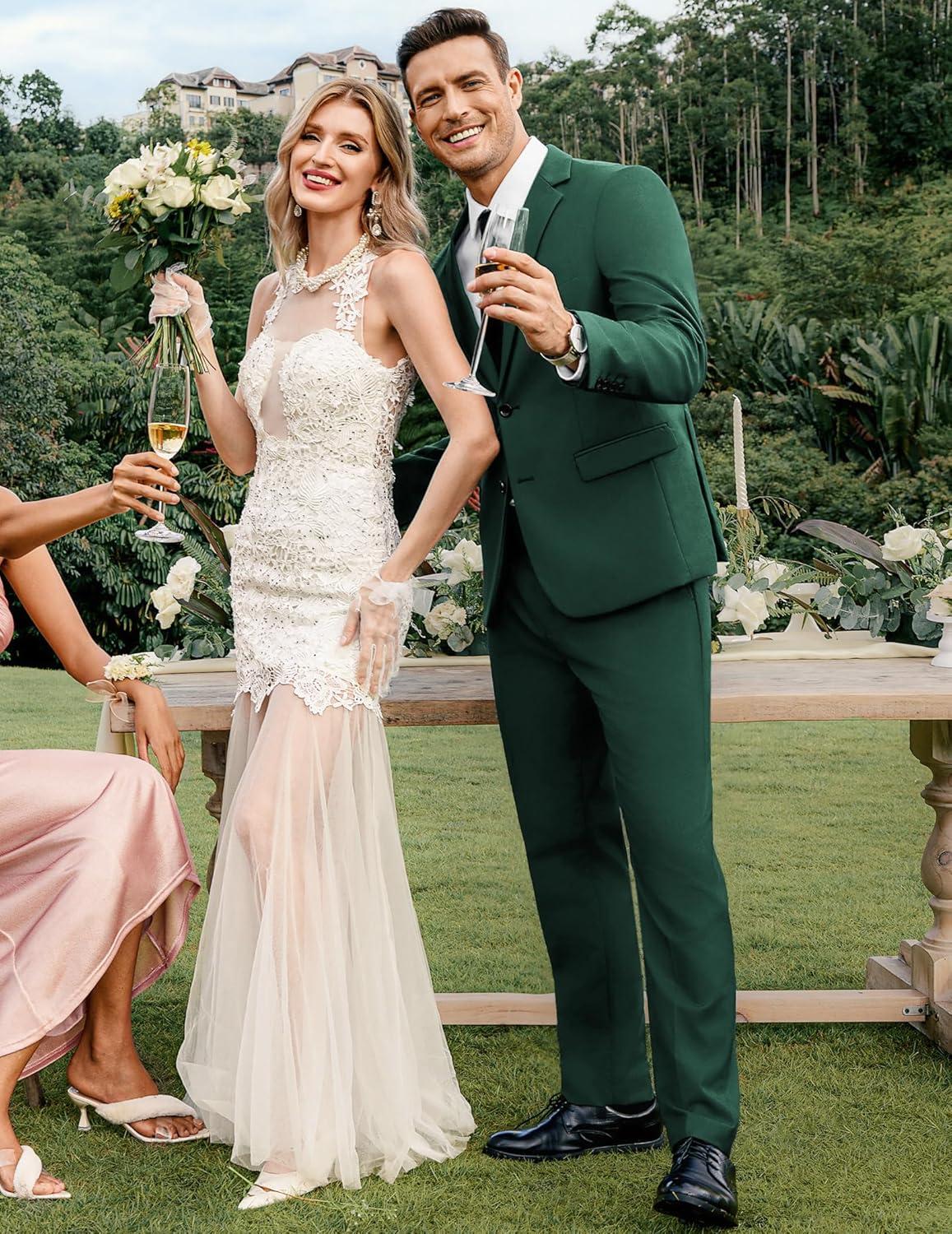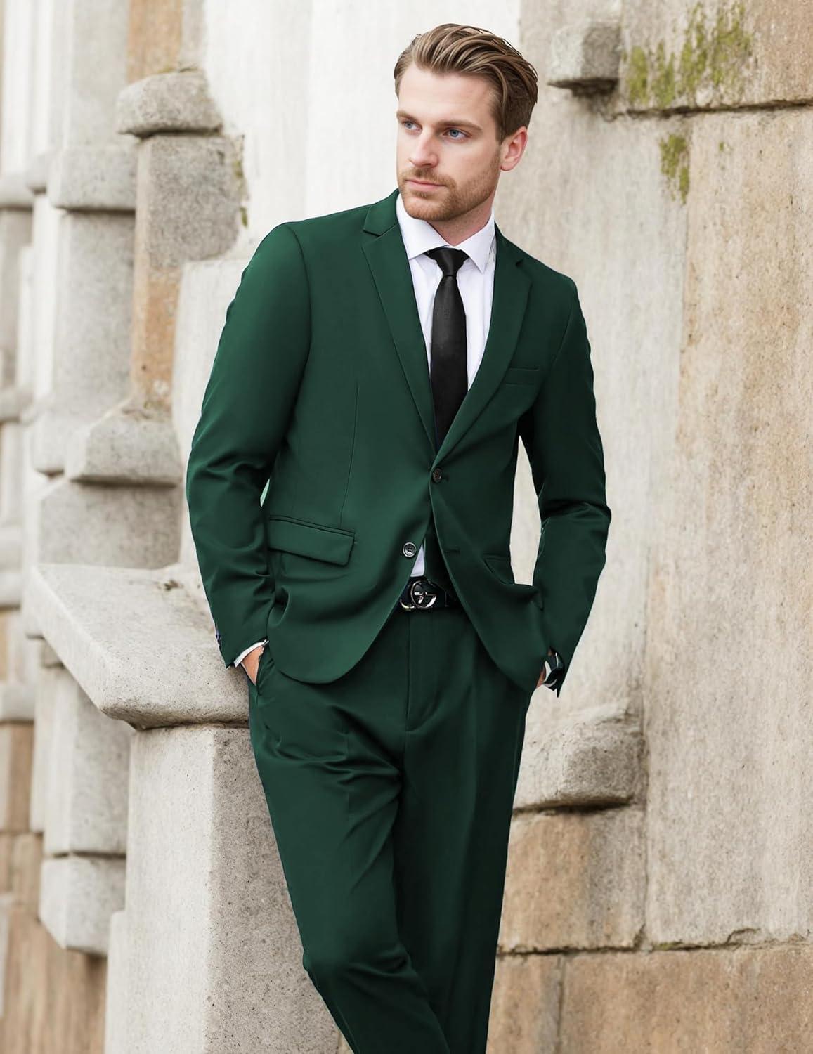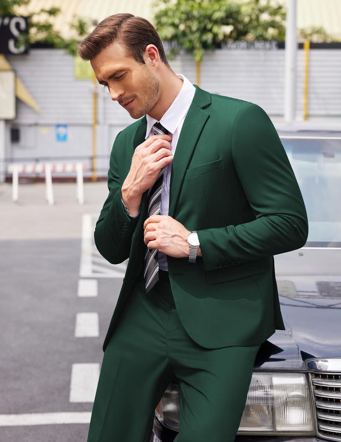 COOFANDY Men's 2 Piece Suits Classic Fit 2 Button Dress Suits Tuxedo Jacket Blazer for Wedding Business Dinner Prom(Dark Green)