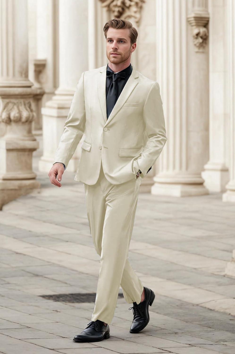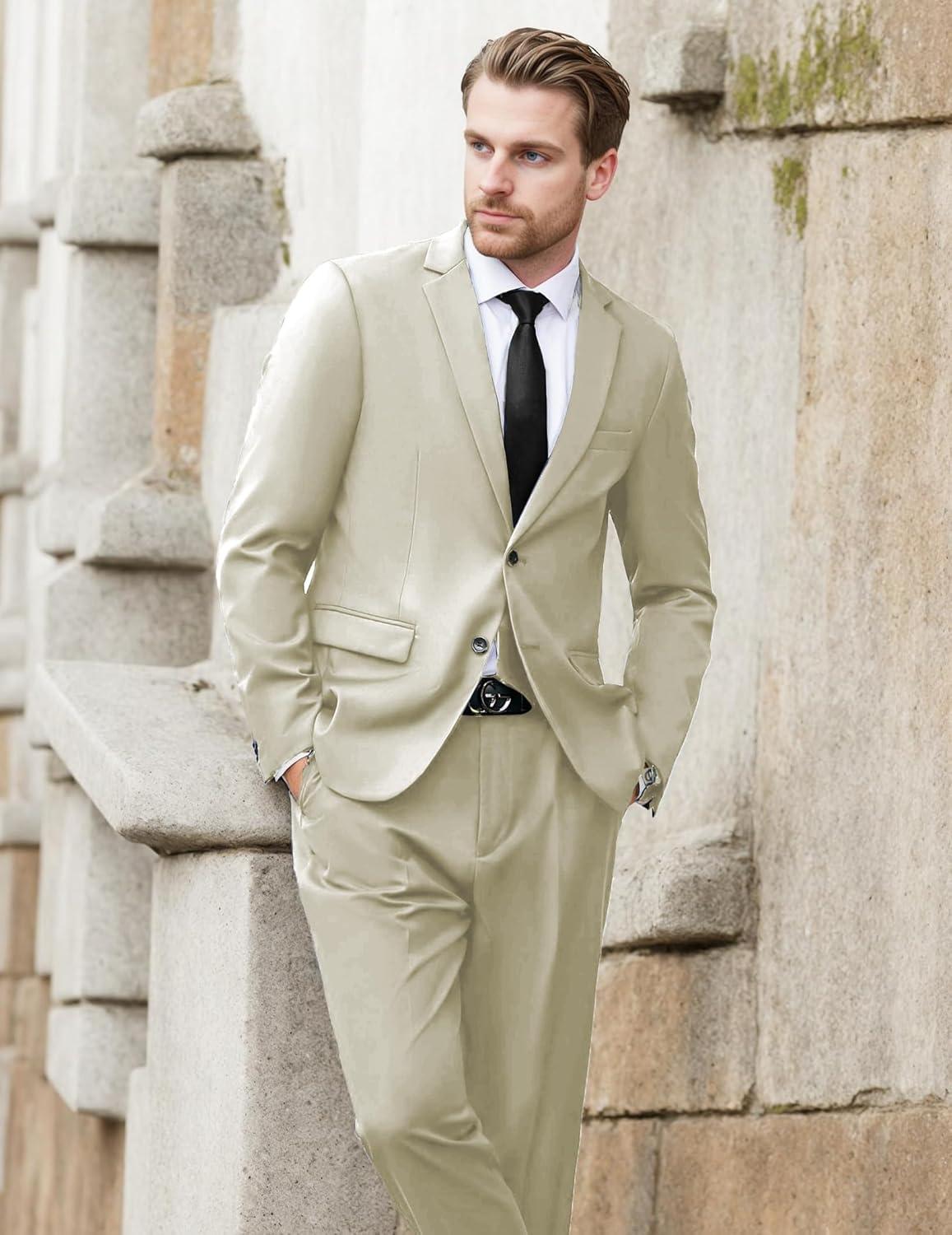 COOFANDY Men's 2 Piece Suits Classic Fit 2 Button Dress Suits Tuxedo Jacket Blazer for Wedding Business Dinner Prom(Khaki)