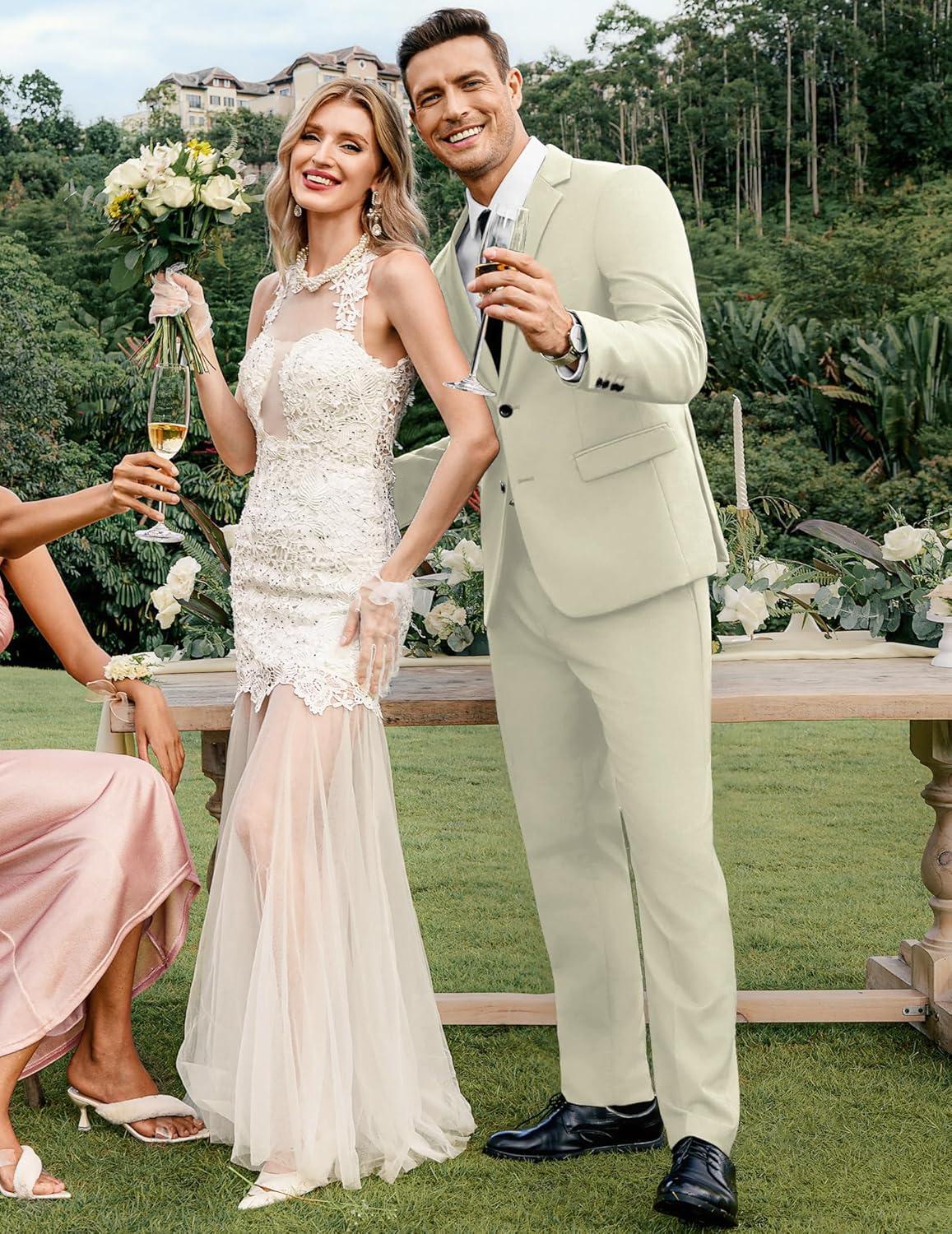 COOFANDY Men’s 2 Piece Suits Classic Fit 2 Button Dress Suits Tuxedo Jacket Blazer for Wedding Business Dinner Prom(Khaki)