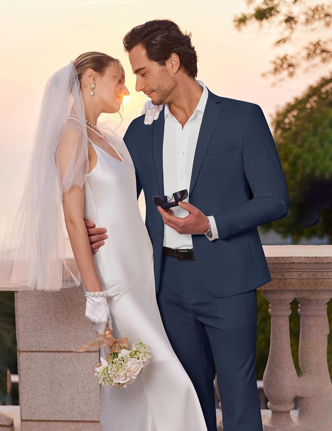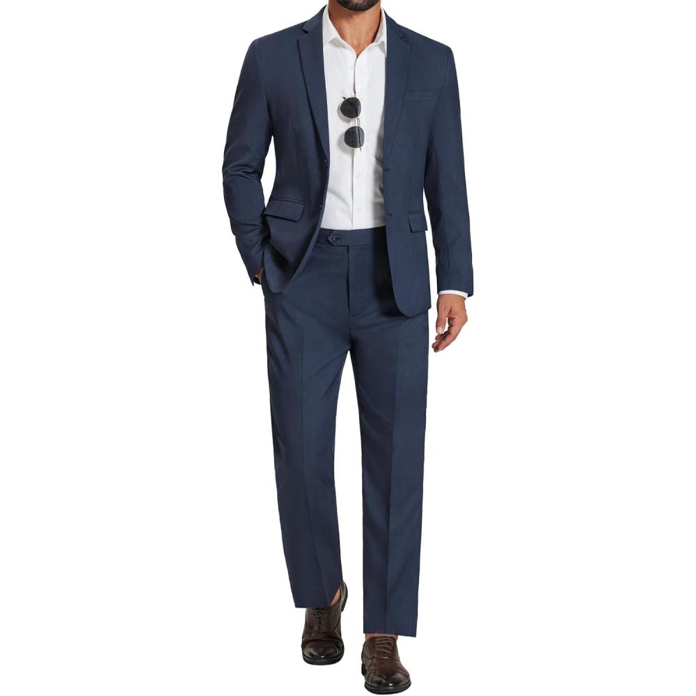 COOFANDY Men's 2 Piece Suits Classic Fit Suit Set 2 Button Blazer Jacket and Dress Pants for Wedding Business Prom(A-navy Blue)