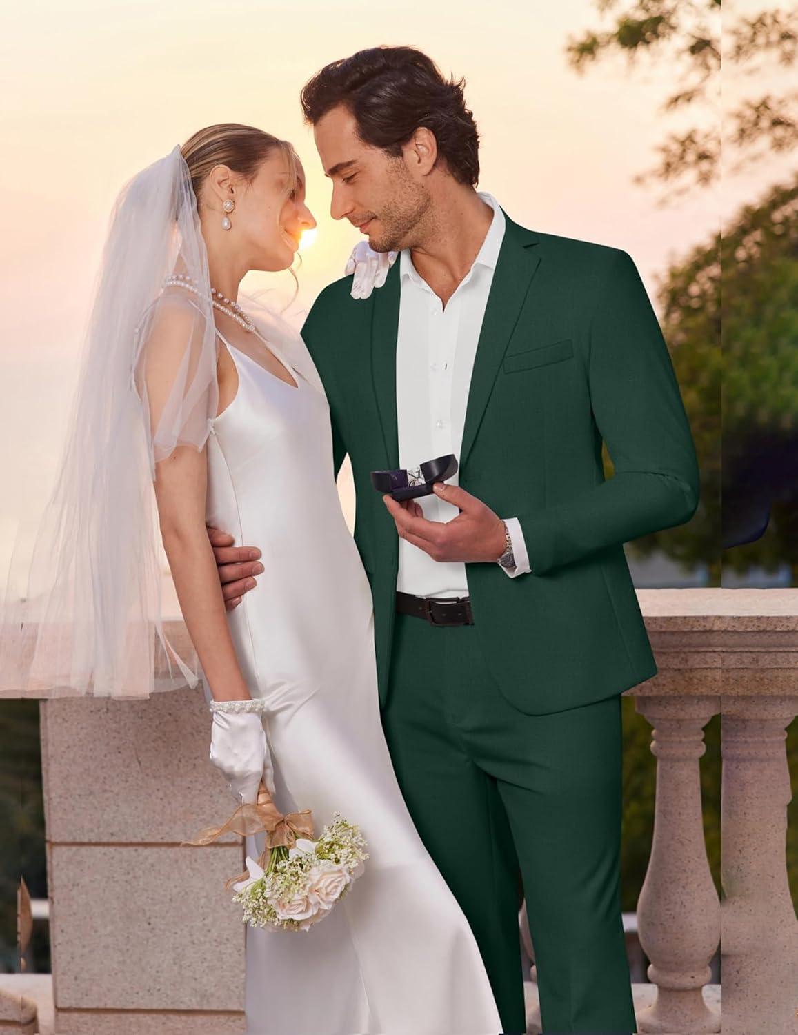 COOFANDY Men’s 2 Piece Suits Classic Fit Suit Set 2 Button Blazer Jacket and Dress Pants for Wedding Business Prom(Green)