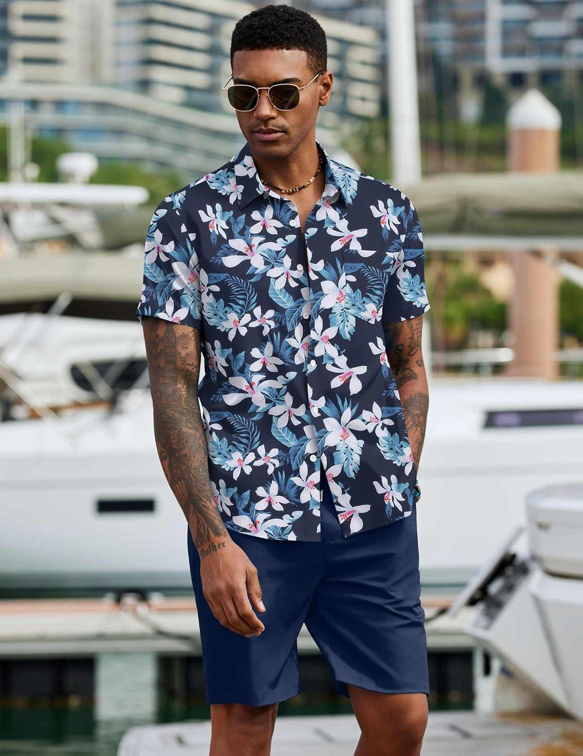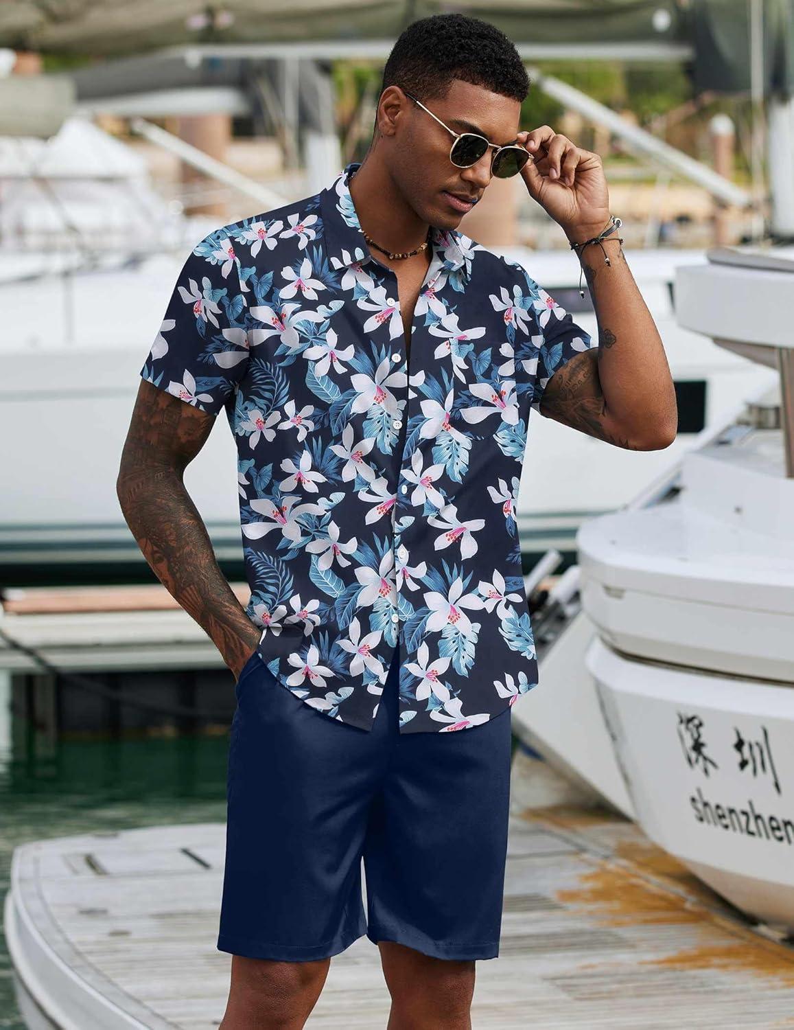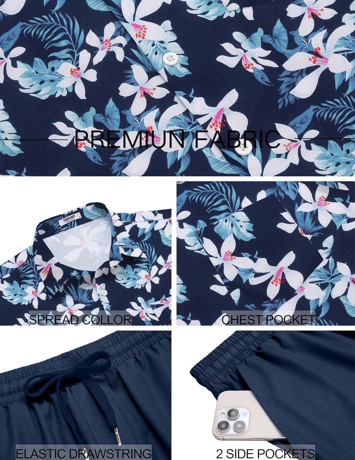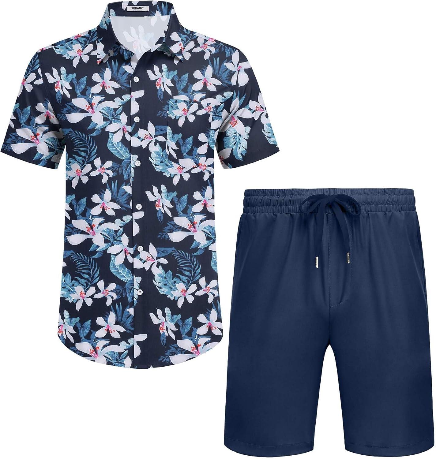 Save big on COOFANDY Men’s 2 Piece Summer Beach Outfits Tropical Short Sleeve Button Down Shirts and Shorts Hawaiian Vacation Sets(Navy White Flower) and accessories during our BOGO sale. Buy one, get one 50% off!