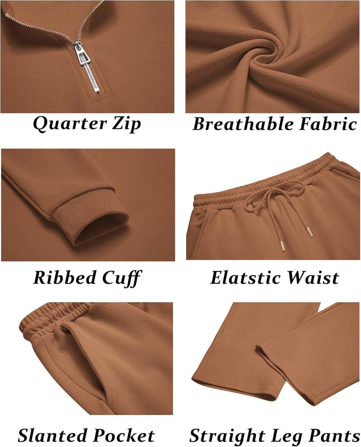 COOFANDY Men's 2 Piece Tracksuit Set Polo Athletic Sweatsuit Quarter Zip Jogging Long Sleeve Casual Sports Outfits(Light Brown)