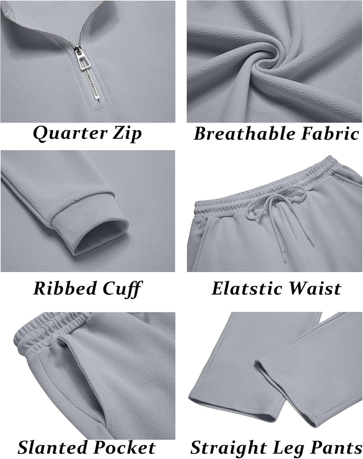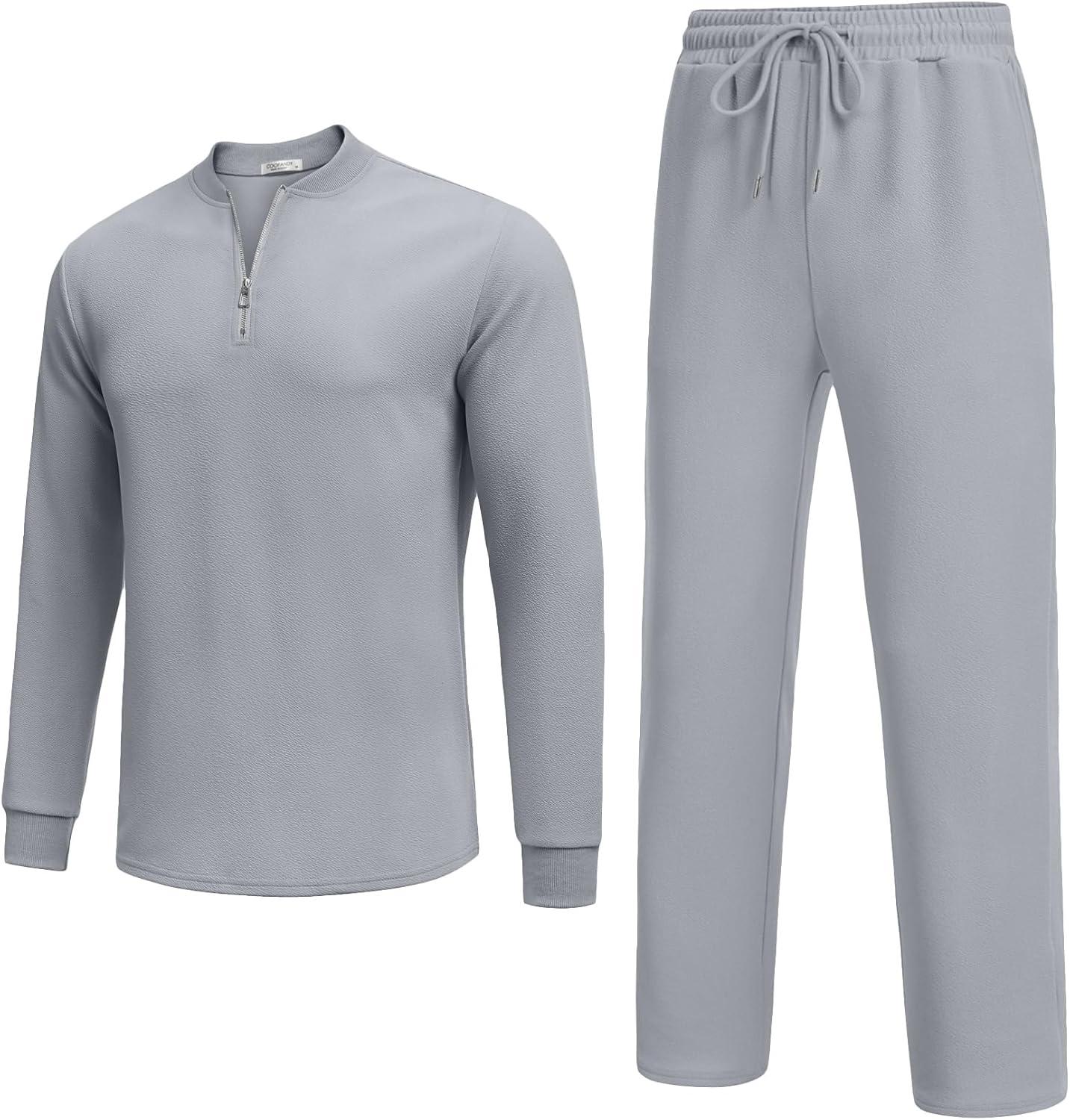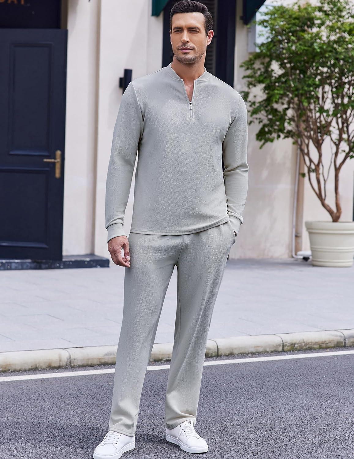 COOFANDY Men's 2 Piece Tracksuit Set Polo Athletic Sweatsuit Quarter Zip Jogging Long Sleeve Casual Sports Outfits(Light Grey)