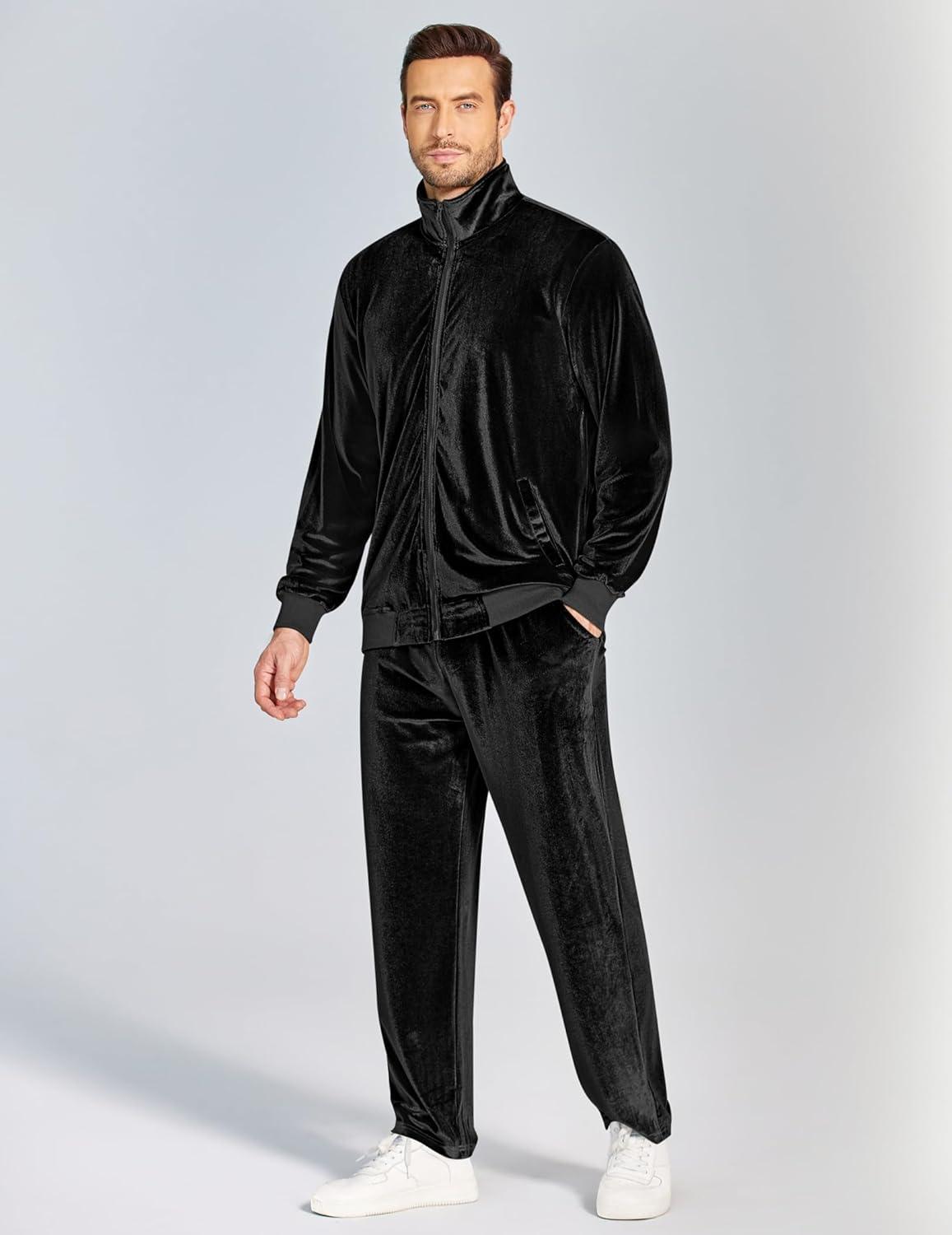 COOFANDY Mens 2 Piece Velour Tracksuit Full Zip Jackets Pants Velvet Jogging Suits Sweatsuit Set(Black)