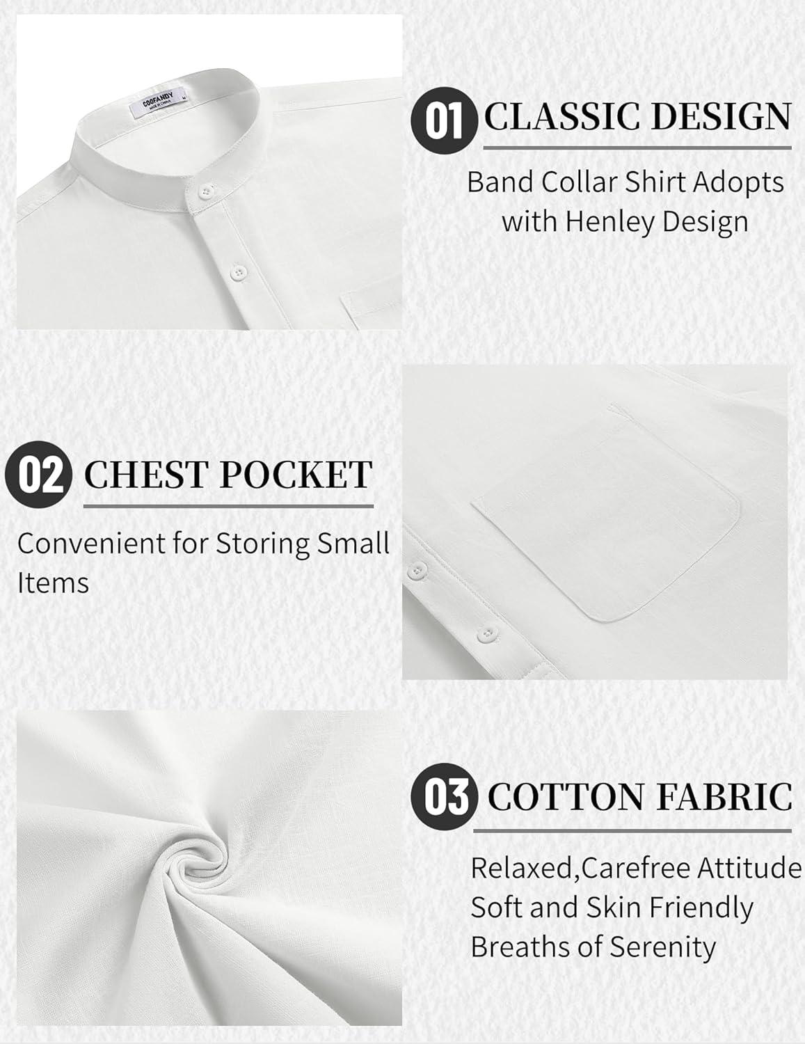 COOFANDY Men's 2 Pieces Cotton Linen Set Casual Short Sleeve Henley Shirts Beach Yoga Pants Summer Outfits(All White)