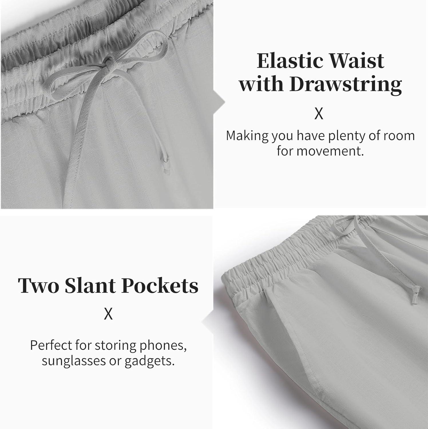 COOFANDY Men's 2 Pieces Cotton Linen Set Casual Short Sleeve Henley Shirts Beach Yoga Pants Summer Outfits(Grey)