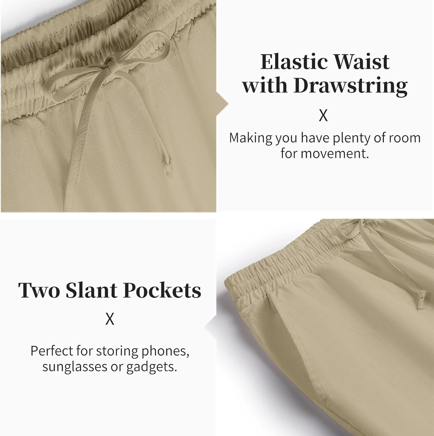COOFANDY Men's 2 Pieces Cotton Linen Set Casual Short Sleeve Henley Shirts Beach Yoga Pants Summer Outfits(Khaki)
