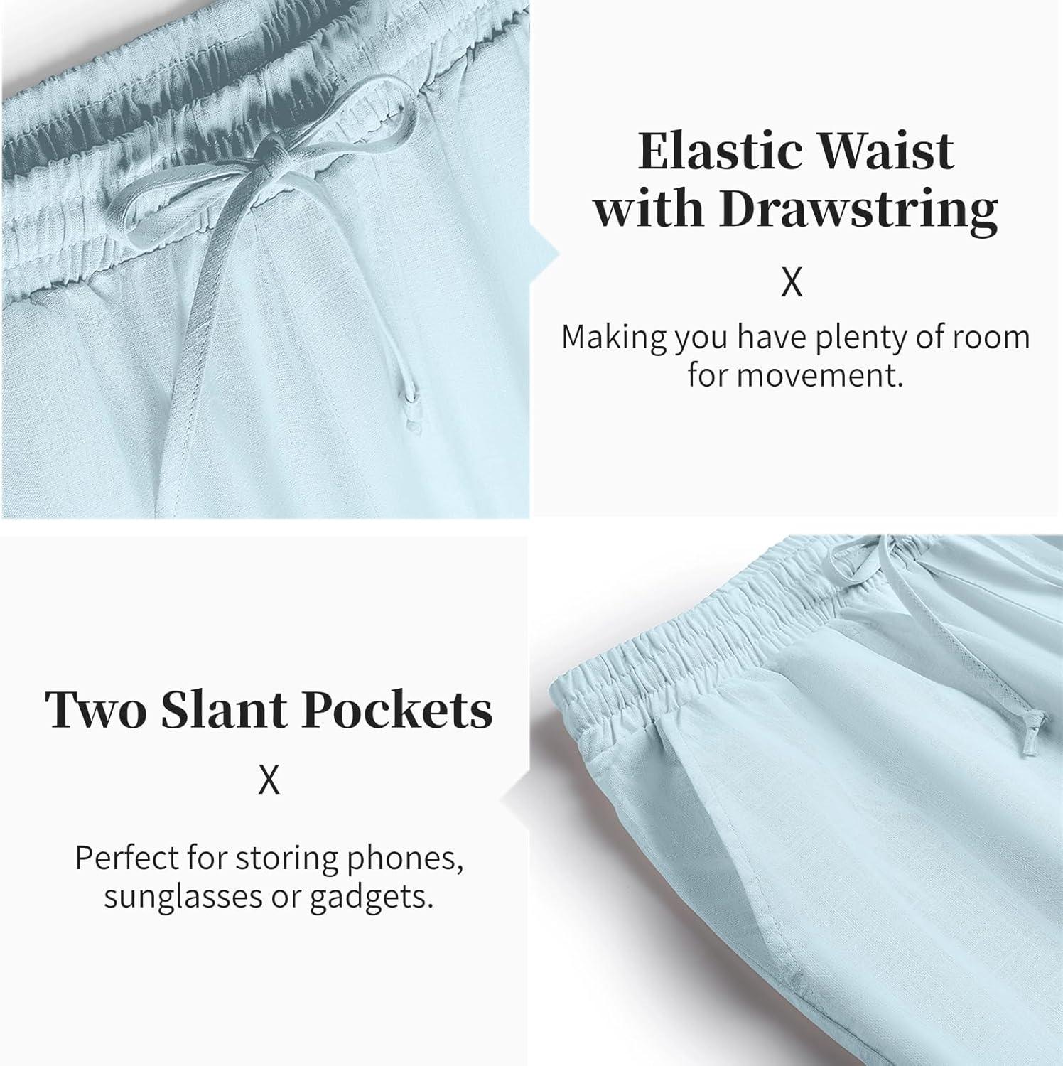 COOFANDY Men's 2 Pieces Cotton Linen Set Casual Short Sleeve Henley Shirts Beach Yoga Pants Summer Outfits(Light Blue)