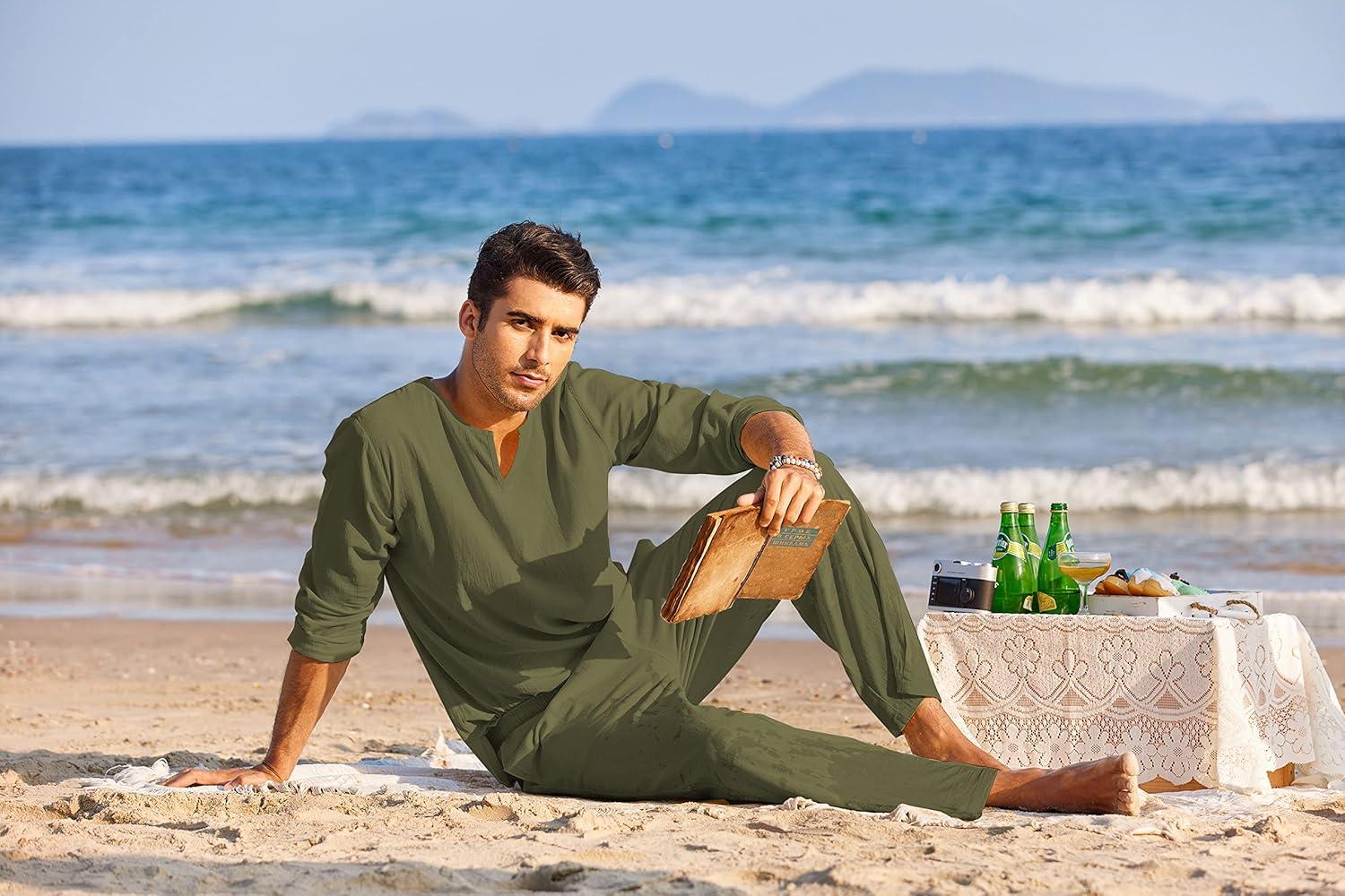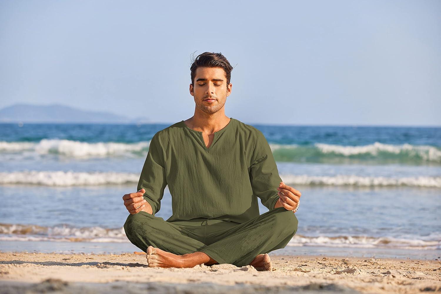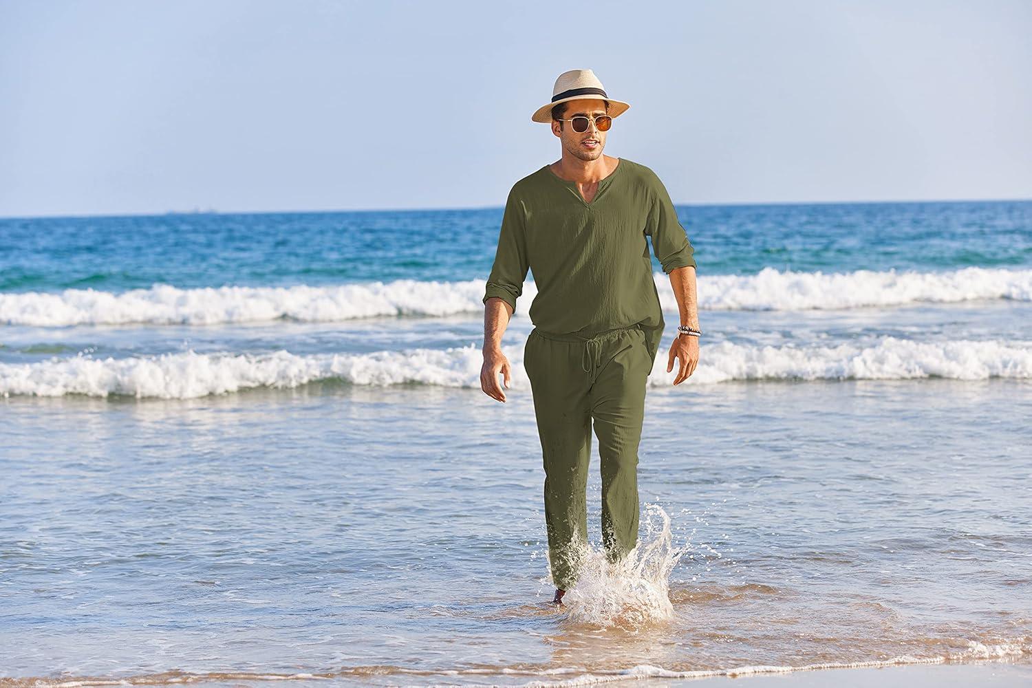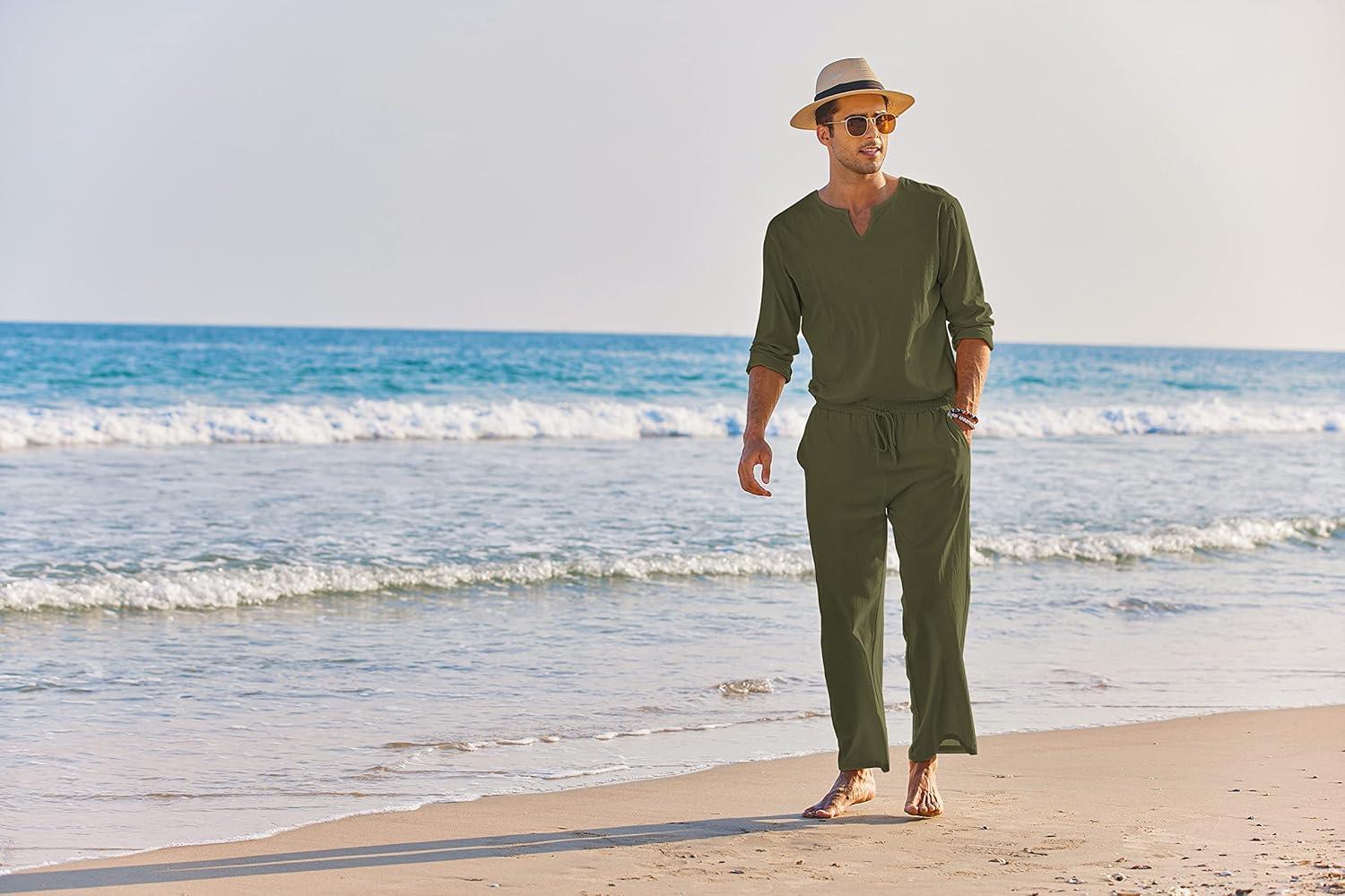 Get up to 70% off on COOFANDY Men’s 2 Pieces Cotton Linen Set Henley Shirt Long Sleeve and Casual Beach Pants Summer Yoga Outfits(Army Green) styles during our end-of-season clearance event.