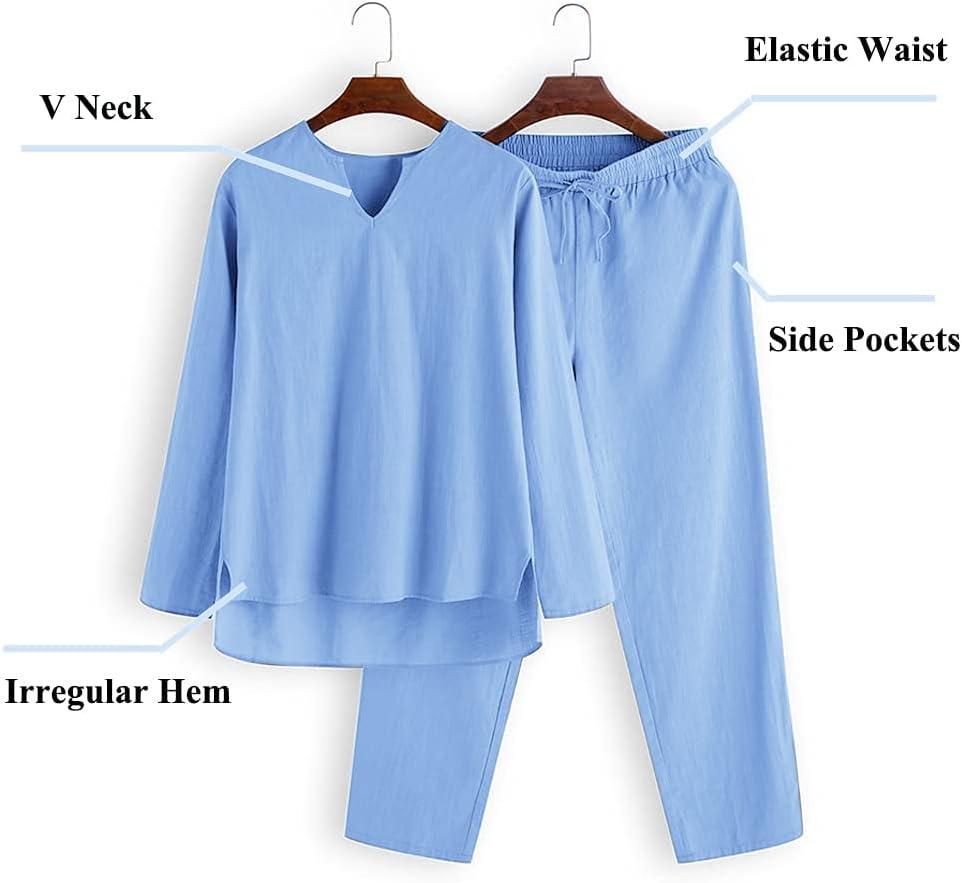 imageCOOFANDY Mens 2 Pieces Cotton Linen Set Henley Shirt Long Sleeve and Casual Beach Pants Summer Yoga OutfitsBlue