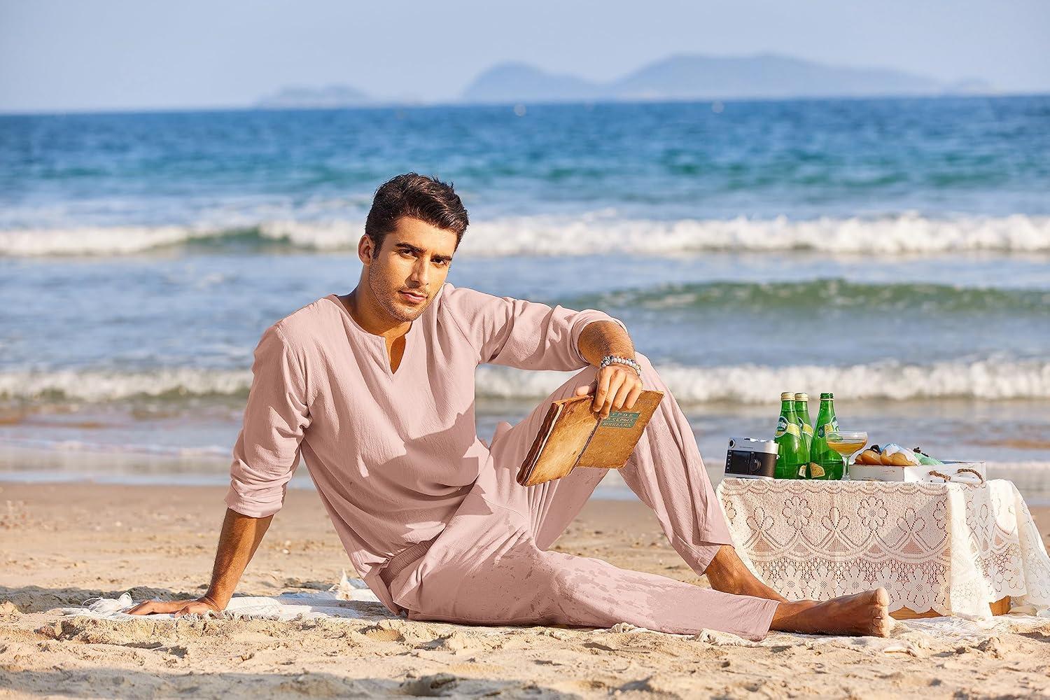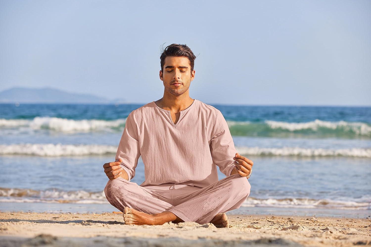 Be the first to review “COOFANDY Men’s 2 Pieces Cotton Linen Set Henley Shirt Long Sleeve and Casual Beach Pants Summer Yoga Outfits(Pink)”