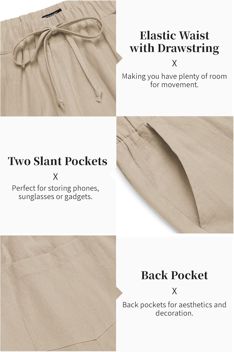 COOFANDY Men's 2 Pieces Cotton Linen Set Long Sleeve Henley Shirts Casual Beach Pants With Pockets Summer Yoga Outfits(Light Khaki)