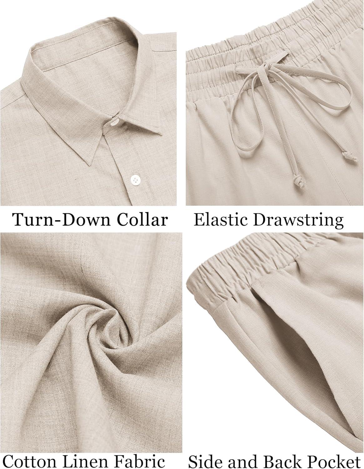COOFANDY Men’s 2 Pieces Cotton Linen Set Short Sleeve Button Down Shirts Summer Beach Shorts Casual Outfits(White)