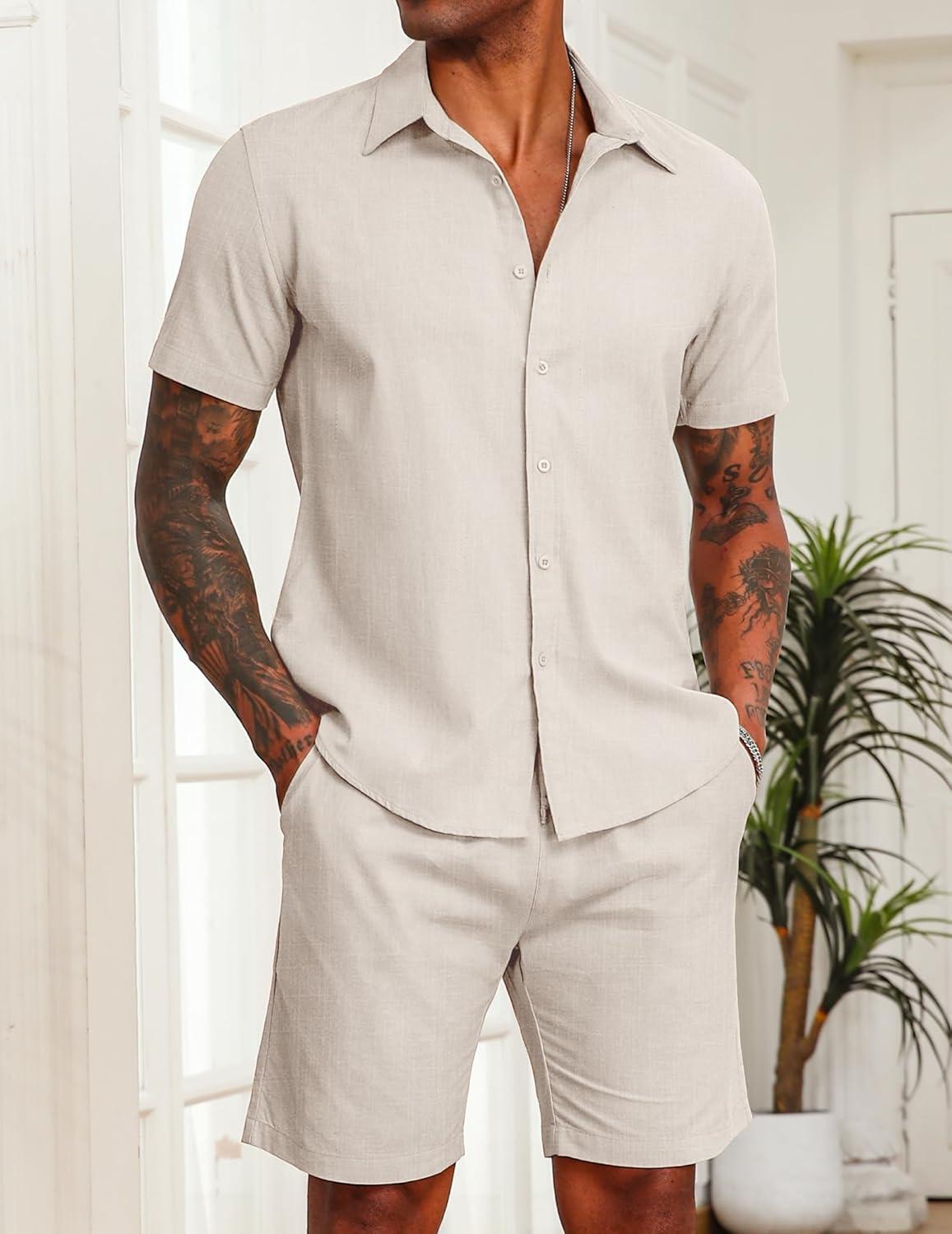 Get your hands on our newest COOFANDY Men’s 2 Pieces Cotton Linen Set Short Sleeve Button Down Shirts Summer Beach Shorts Casual Outfits(Shallow Coffee) and enjoy a limited-time discount offer.