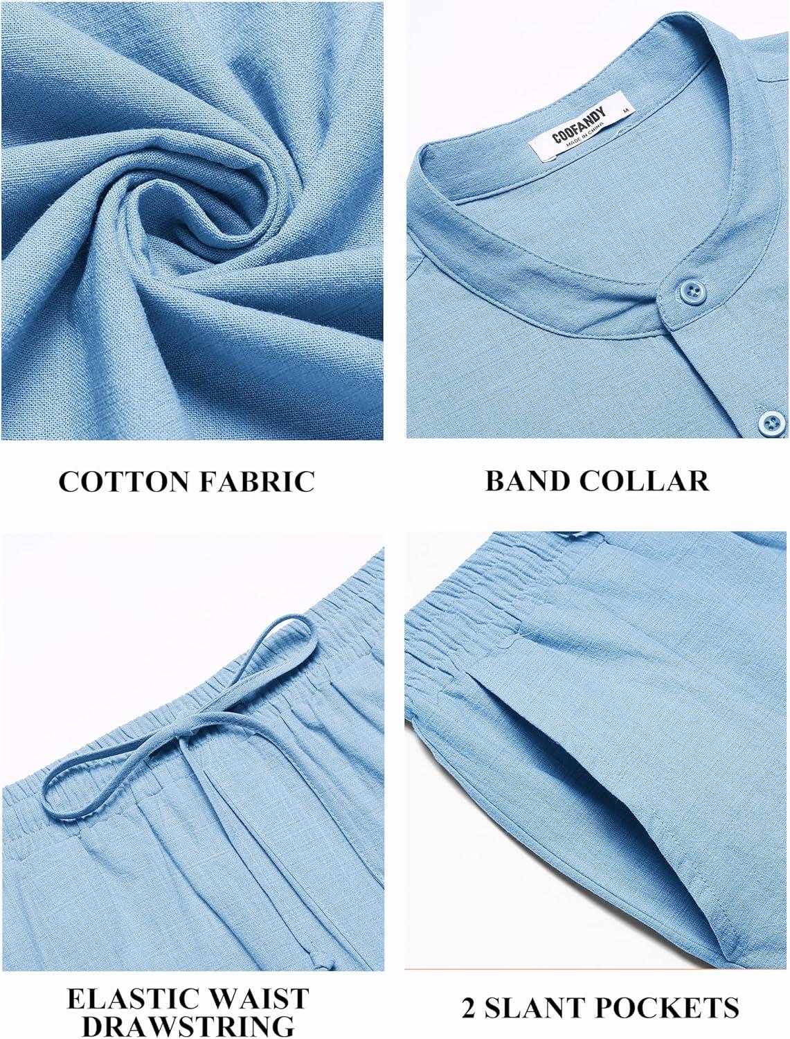 Be the first to review “COOFANDY Mens 2 Pieces Cotton Linen Sets Short Sleeve Casual Henley Shirt Summer Beach Pants Lounge Vacation Outfits Set(Light Blue)”