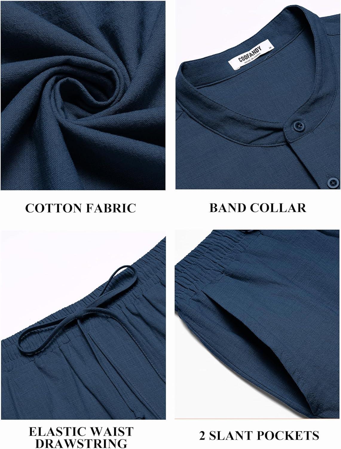 Be the first to review “COOFANDY Mens 2 Pieces Cotton Linen Sets Short Sleeve Casual Henley Shirt Summer Beach Pants Lounge Vacation Outfits Set(Navy Blue)”