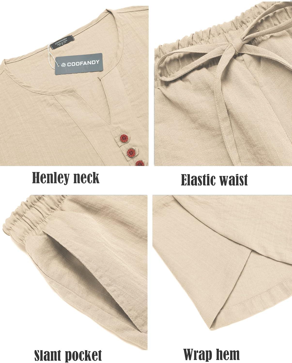 imageCOOFANDY Mens 2 Pieces Linen Set Henley Shirt Short Sleeve and Harem Capri Pants Wide Leg Baggy Beach Yoga Trousers Outfits02light Khaki