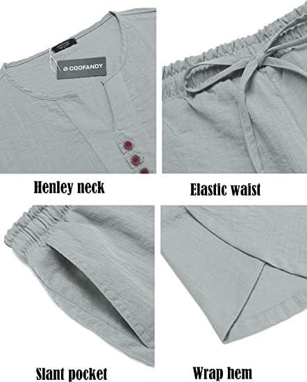 imageCOOFANDY Mens 2 Pieces Linen Set Henley Shirt Short Sleeve and Harem Capri Pants Wide Leg Baggy Beach Yoga Trousers OutfitsGrey