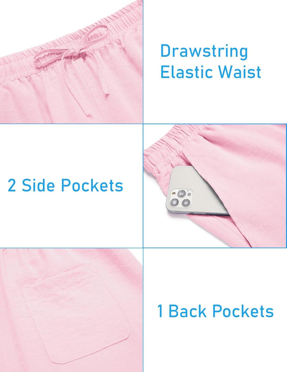 COOFANDY Men's 2 Pieces Linen Set Henley Shirt Short Sleeve and Shorts Summer Beach Yoga Matching Outfits(Pink)