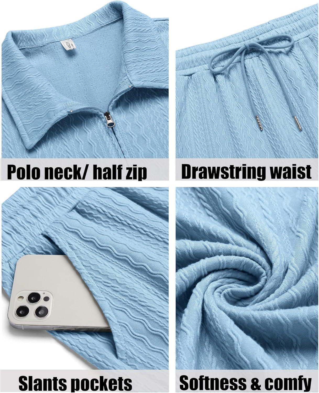 COOFANDY Men's 2 Pieces Outfits Casual Quarter Zip Polo Shirt and Shorts Set Athletic Jogging Summer Tracksuit(Light Blue)